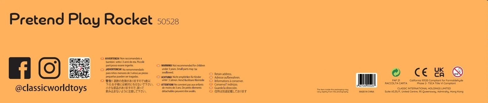 Šis didelis, daugiaaukštis CLASSIC WORLD medinis žaidimų namelis-raketa – puikus pasirinkimas kosmoso nuotykių mėgėjams. Jis tarnauja tiek kaip kosminis laivas, tiek kaip astronautų bazė. Detaliai įrengti aukštai ir atvira konstrukcija užtikrina patogų priėjimą ir neribotas galimybes vaidmenų žaidimams. Vaikai galės leistis į įsivaizduojamas tarpžvaigždines misijas, lavindami savo vaizduotę.