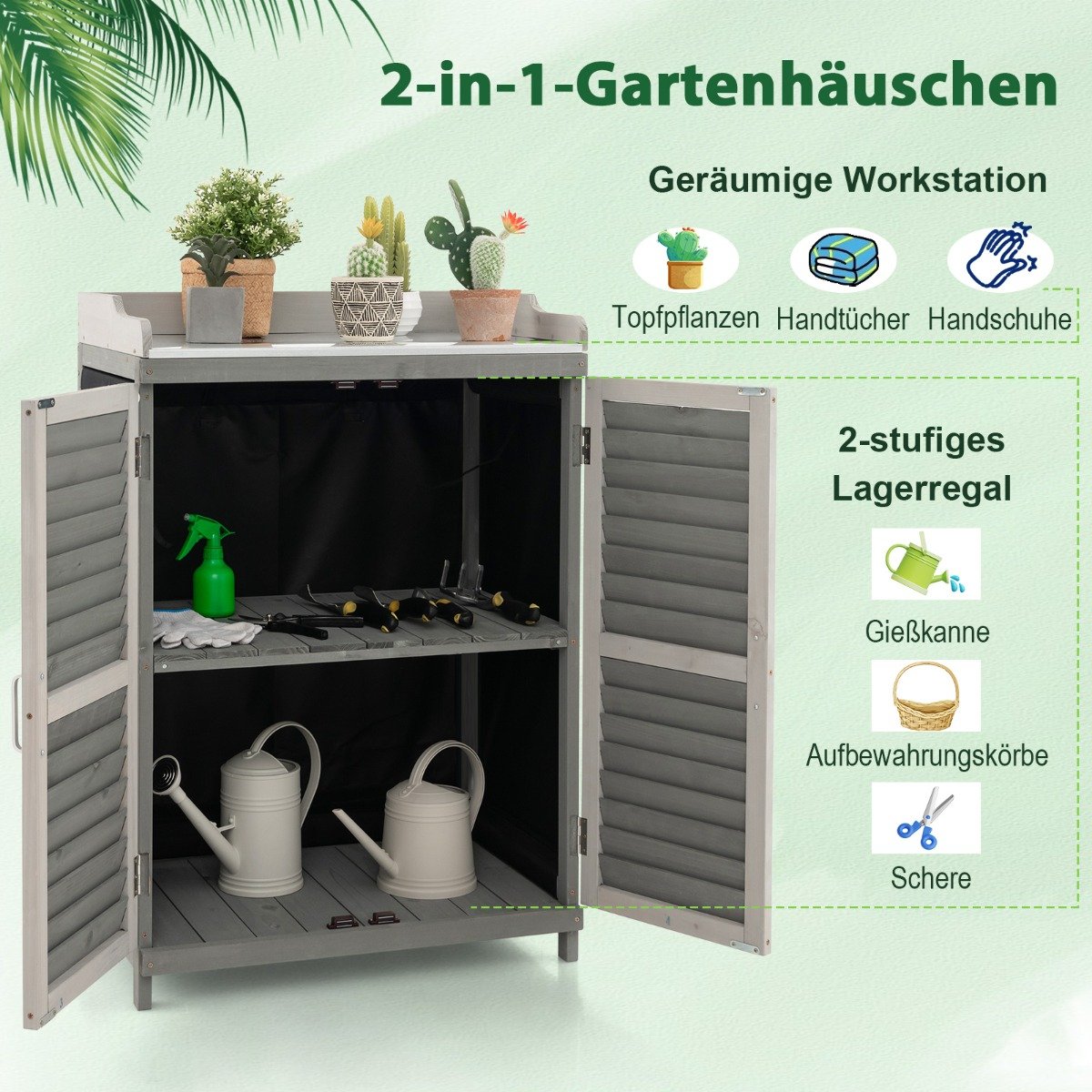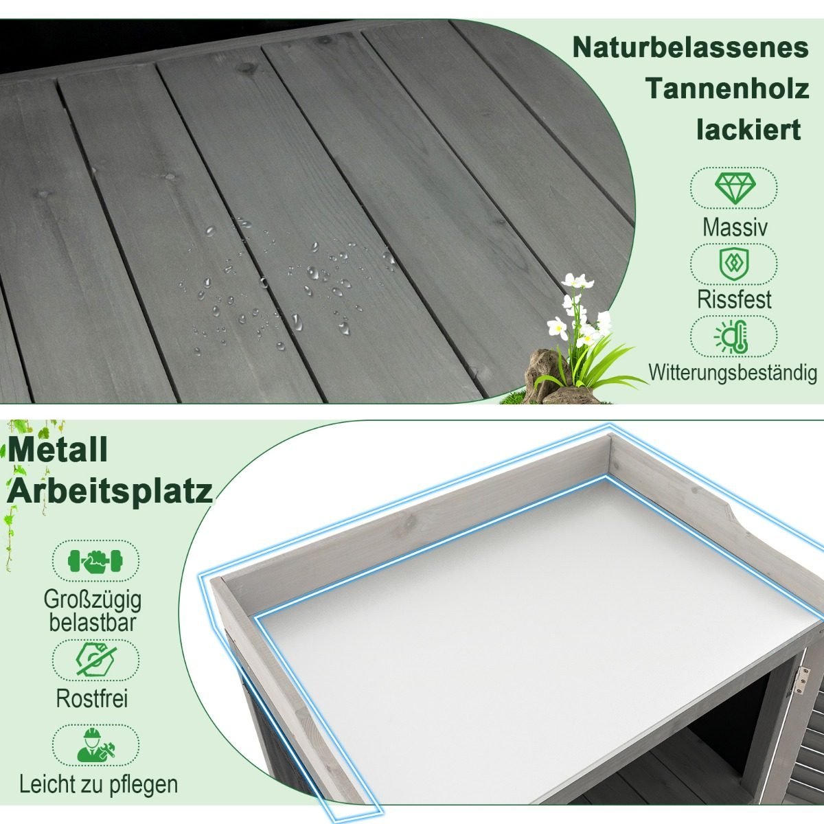 Medinė lauko daržovių ir įrankių spintelė su metaline plokšte (Pilka)