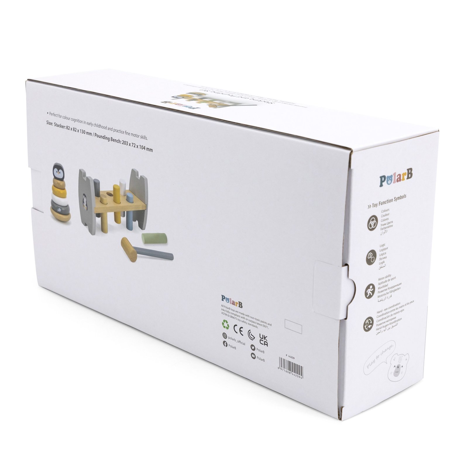 Šiame rinkinyje rasite du pastelinių spalvų medinius žaislus: lavinamąją piramidę ir daužyklę su plaktuku. Šie žaislai ne tik smagiai užims mažylį, bet ir padės lavinti smulkiąją motoriką, loginį mąstymą bei atpažinti spalvas. Žaidžiant su jais ugdomas rankų tikslumas ir vikrumas, kuris vėliau palengvins mokymąsi rašyti.