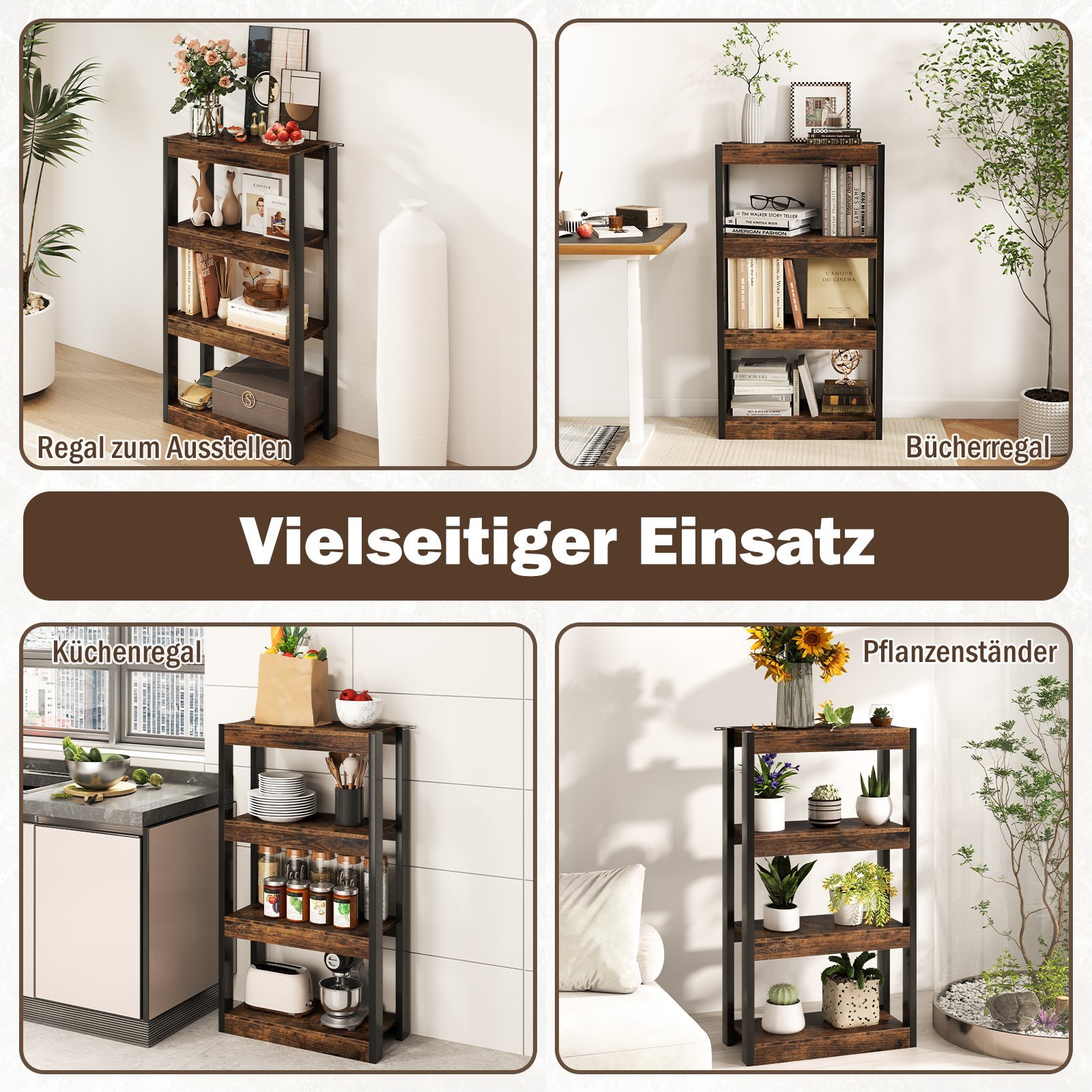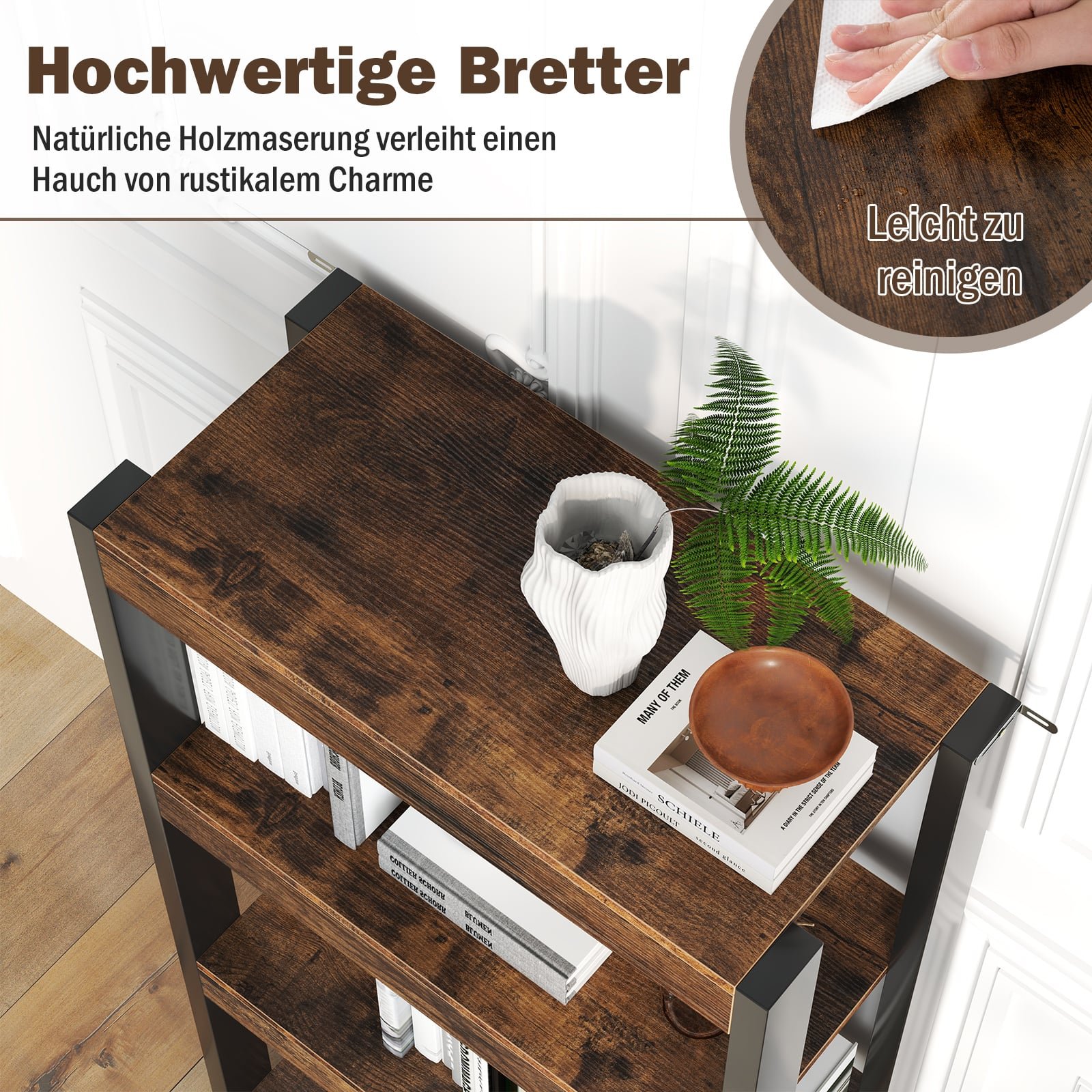 Medinė pastatoma 4 lygių lentyna su apsauga nuo apvirtimo (Ruda)