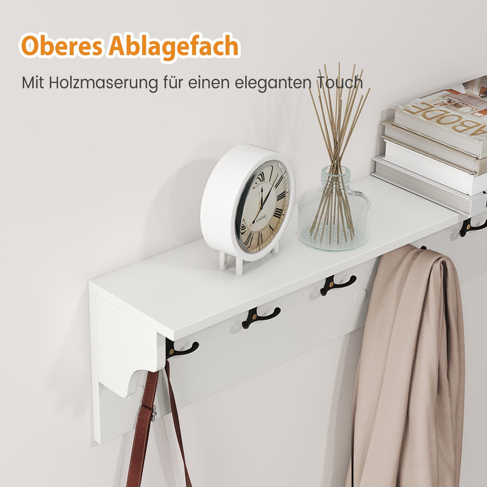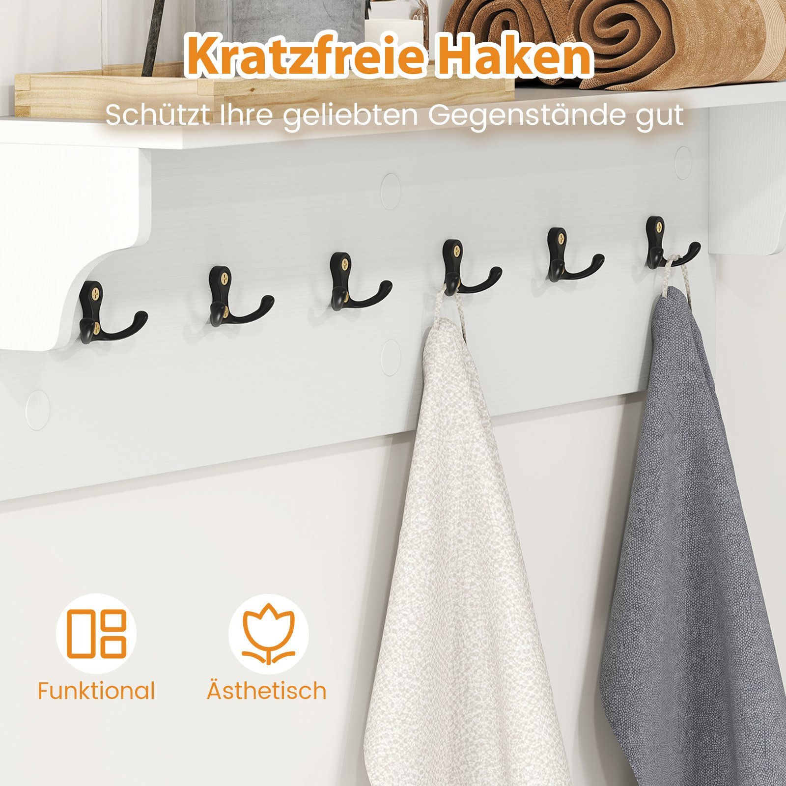 Suteikite savo namams tvarkos su mūsų prie sienos tvirtinama kabykla! Derindama funkcionalumą ir estetiką, ji puikiai tiks prieškambariui, virtuvei, miegamajam ar vonios kambariui. Viršutinė lentyna ir 6 elegantiški kabliukai padės tvarkingai laikyti kepures, rankšluosčius ir chalatus, kad jie visada būtų lengvai pasiekiami. Prie sienos tvirtinamas dizainas taupo vietą ir suteikia Jūsų erdvėms elegancijos.
