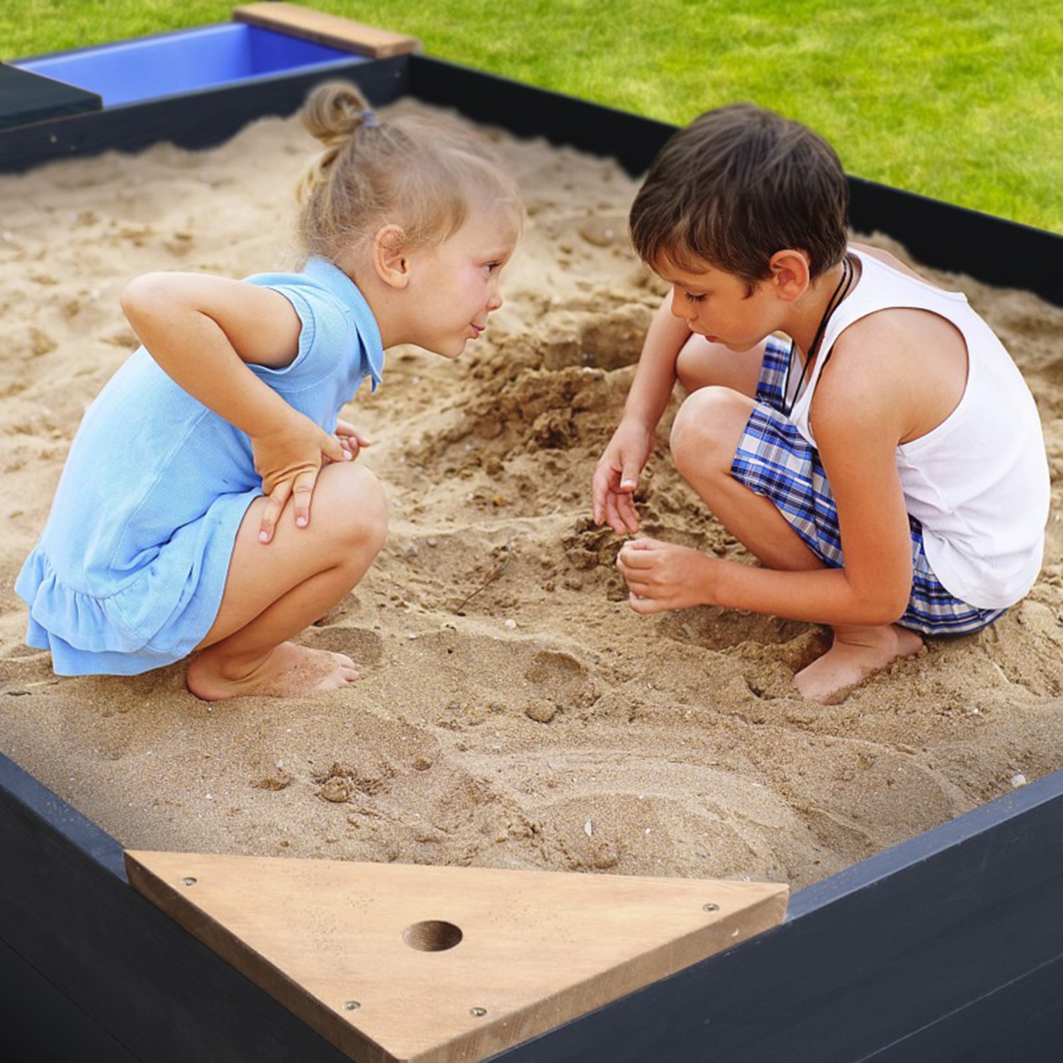 Ši tvirta smėlio dėžė pagaminta iš sertifikuotos Vakarų cūgos (FSC) medienos. Joje yra dvi išimamos talpyklos smėliui ar vandeniui, patogus suoliukas su daiktadėže ir kampinės sėdynės su integruota anga skėčiui. Į komplektą įeina dangtis ir smėlį apsaugantis kilimėlis. Dėžėje telpa iki 450 kg smėlio. Ji atspari oro sąlygoms ir lengvai surenkama.