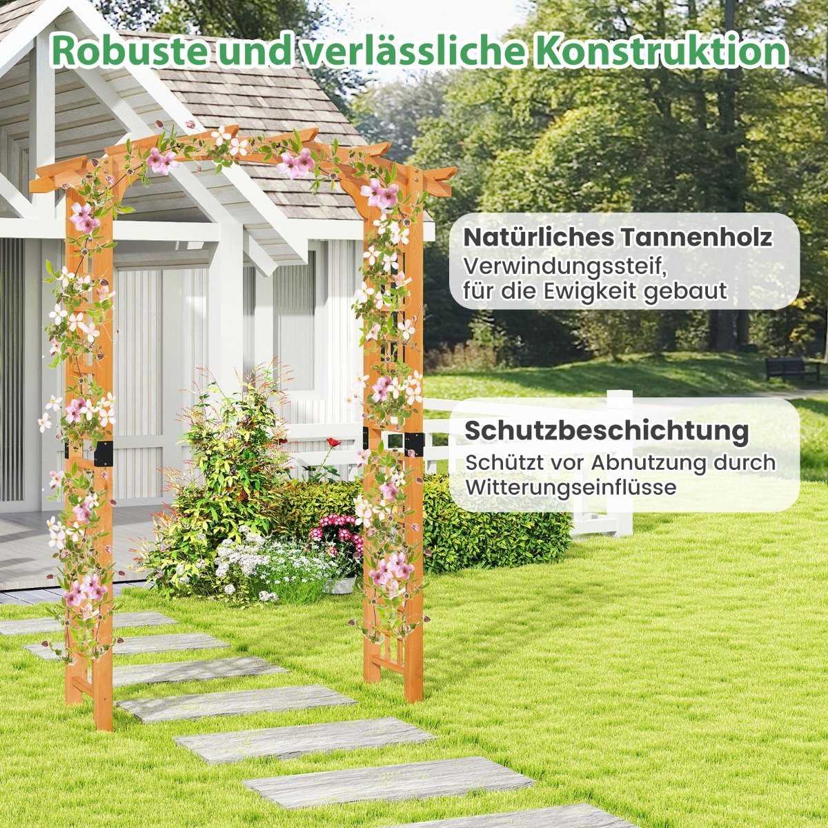 Suteikite savo lauko erdvei išskirtinio žavesio su šiuo mediniu sodo arku. Jis ne tik puikiai tiks kylančioms augalams, bet ir taps elegantiška puošmena vestuvėms, jubiliejams ar tiesiog gražiu įėjimu į jūsų sodą ar kiemą. Sukurkite unikalią atmosferą ir mėgaukitės nuostabiu lauko dizainu.