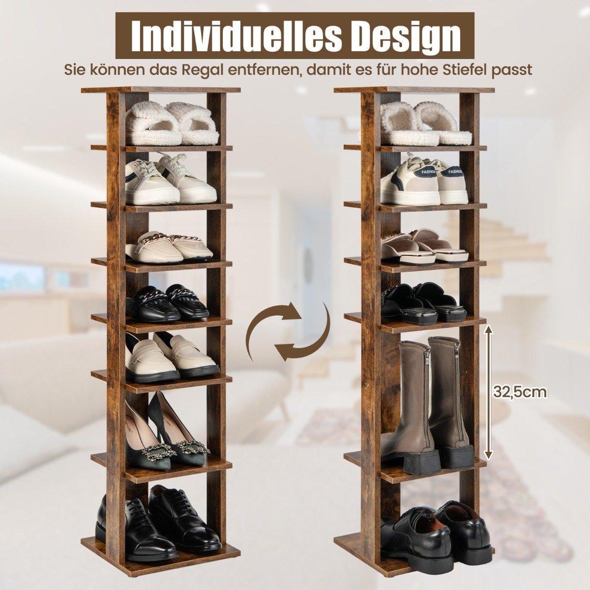 Atsisveikinkite su netvarkingu kambariu! Šis 7 pakopų batų stovas su skirtingo aukščio lentynomis leis lengvai sutvarkyti jūsų avalynę. Kai kurias lentynas galima išimti, todėl stovas puikiai tiks įvairių rūšių batams laikyti, netgi aukštiems auliniams batams.