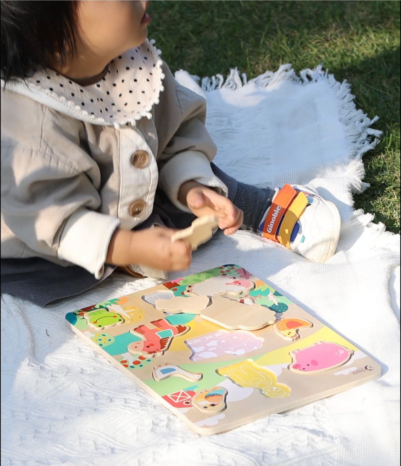Ši edukacinė medinė ūkio temos dėlionė – puikus pasirinkimas smagioms ir mokomosioms akimirkoms. 12 dalių rinkinyje rasite naminių gyvūnų ir ūkininko figūrėles, skirtas vaikams nuo 18 mėnesių. Pagal Montessori metodą sukurta dėlionė lavina smulkiąją motoriką, moko atpažinti formas ir įvairius gyvūnus. Pagaminta iš ekologiškos, saugios medienos ir dažyta netoksiškais dažais, užtikrinant saugų ir kūrybišką žaidimą.