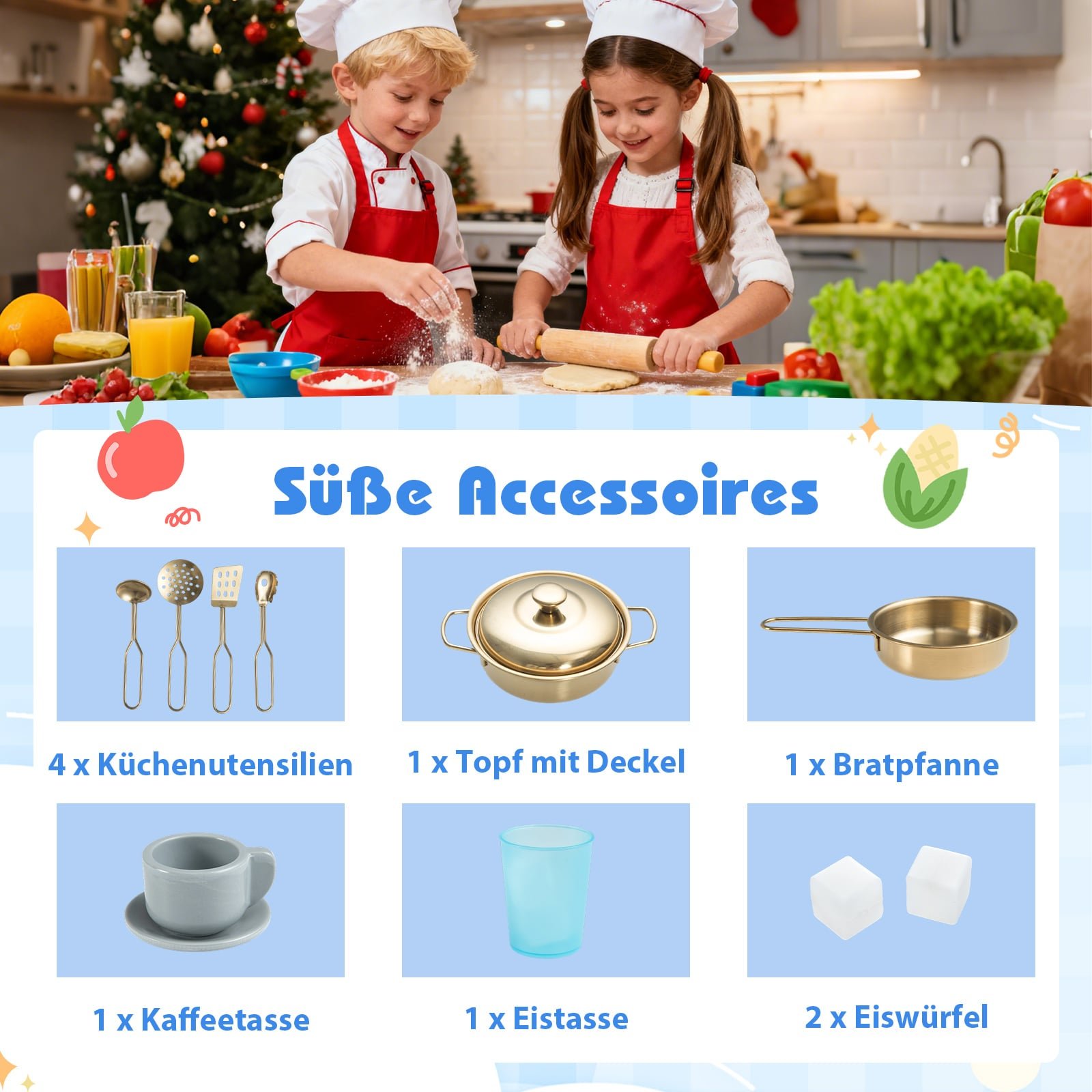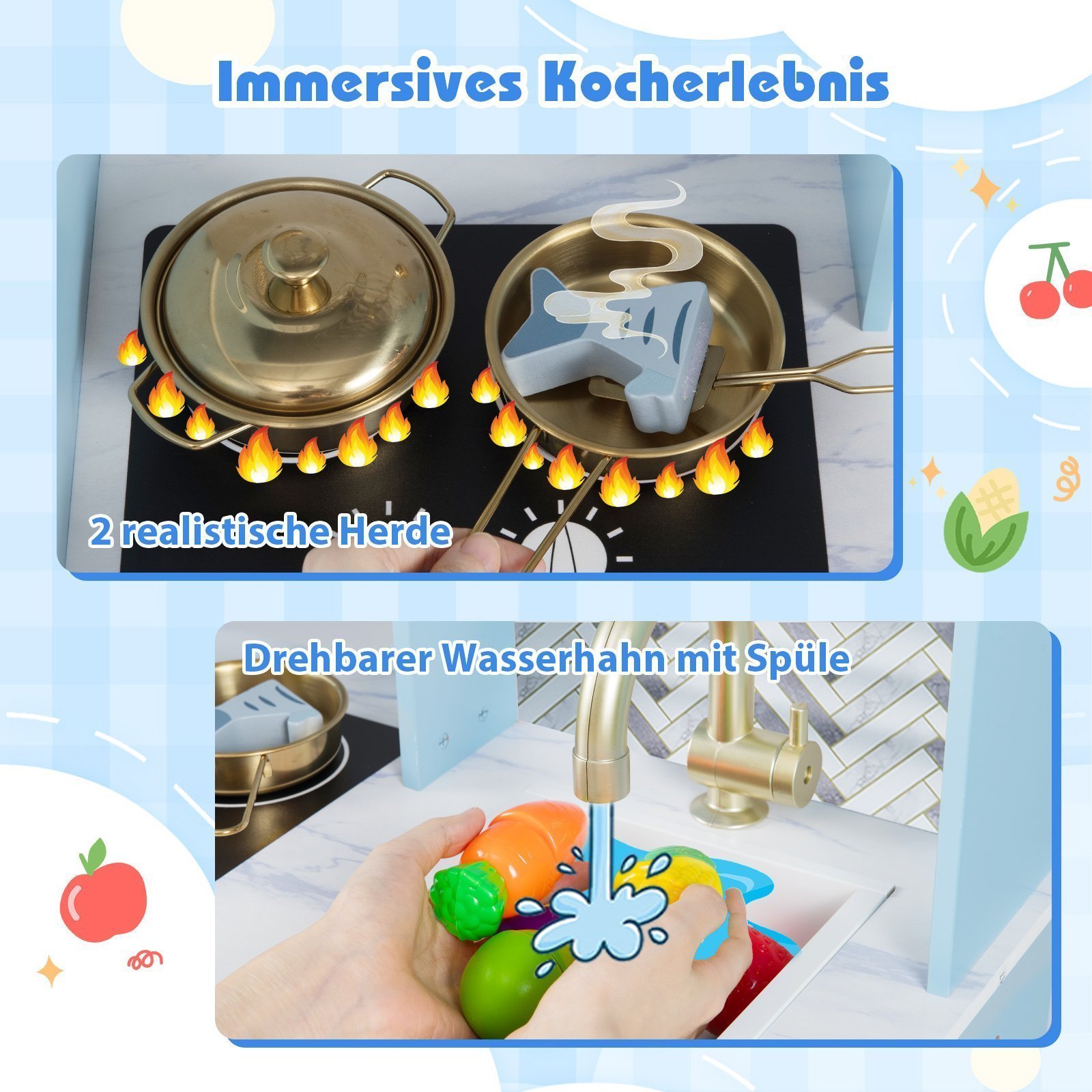 - Realistiškos virimo funkcijos: dvi viryklės, mikrobangų krosnelė, gartraukis ir pasukami mygtukai su tikrovišku spragtelėjimo garsu.