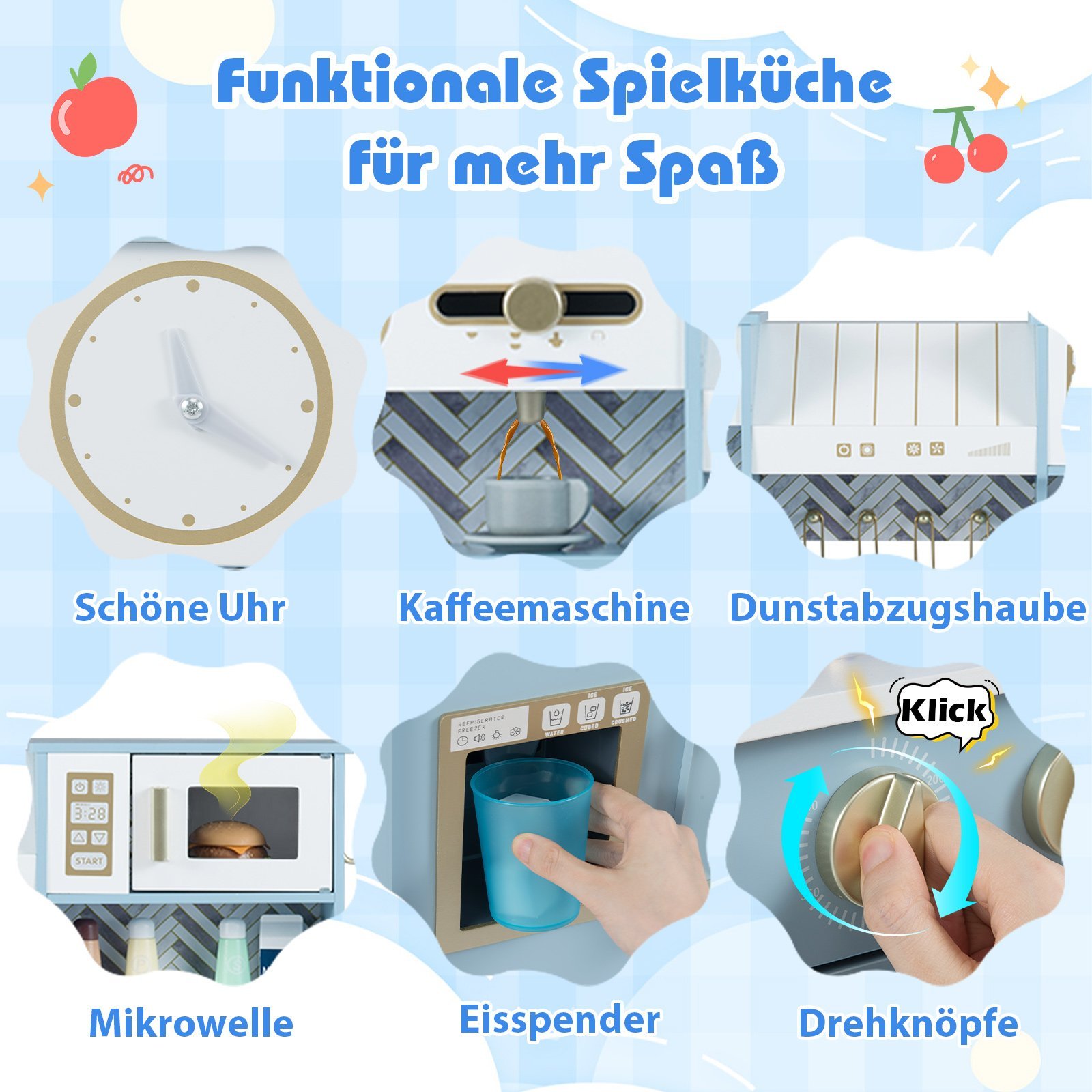 Medinė vaikiška virtuvėlė su kavos aparatu ir ledo kubelių dalytuvu (Mėlyna)