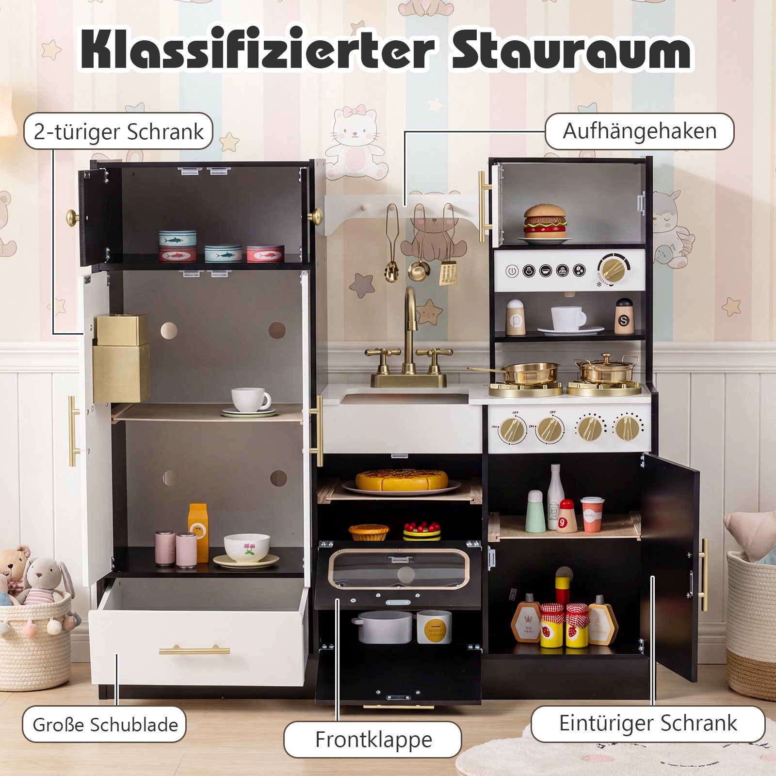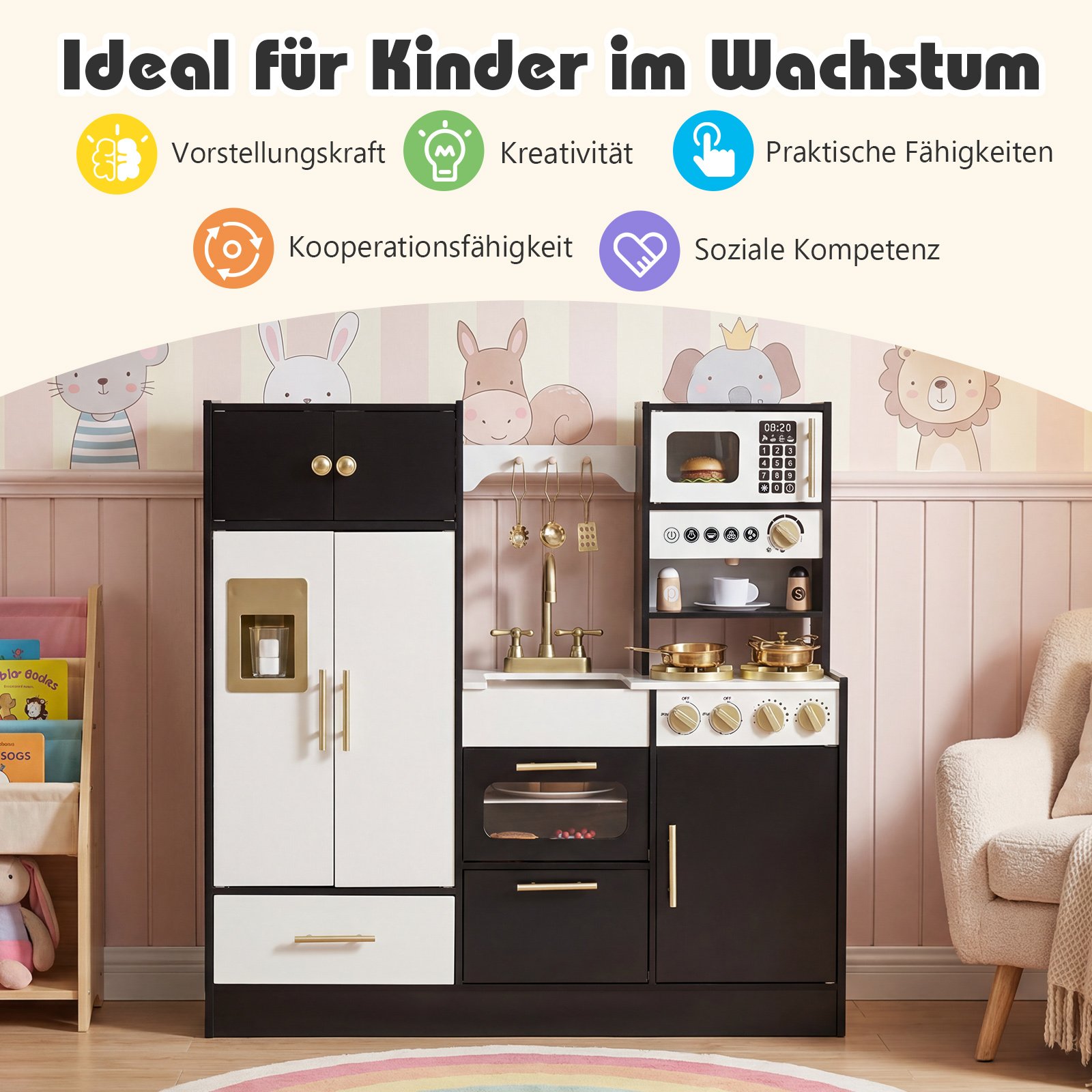 Medinė vaikų virtuvėlė su šviesos ir garso efektais (Juoda)