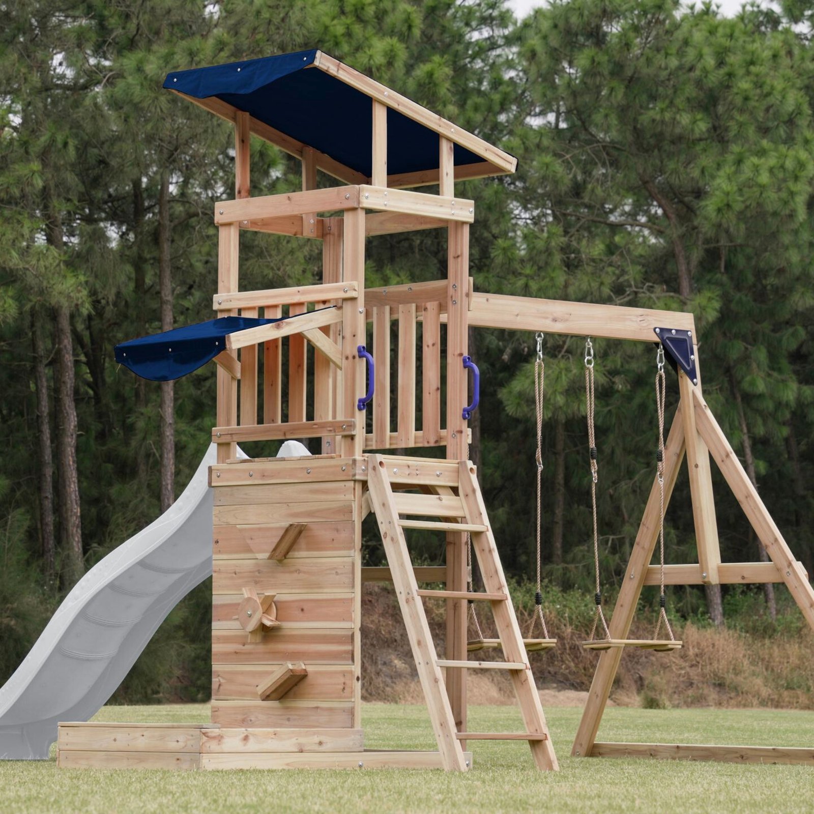 Ši didelė žaidimų aikštelė su apžvalgos bokšteliu, ilga čiuožykla, dvigubomis sūpynėmis ir smėlio dėže padeda vaikams lavinti kūrybiškumą, jėgą ir judesių koordinaciją. Rinkinys, sukurtas aktyviam žaidimui lauke, pagamintas iš 100% FSC sertifikuotos kedro medienos, atsparios oro sąlygoms ir puvimui. Mediena apsaugota ekologišku vandeniniu beicu, be cheminių medžiagų. Žaidimų aikštelė atitinka CE, EN 71, FSC 100% ir UKCA standartus, užtikrindama saugų ir ilgaamžį naudojimą.
