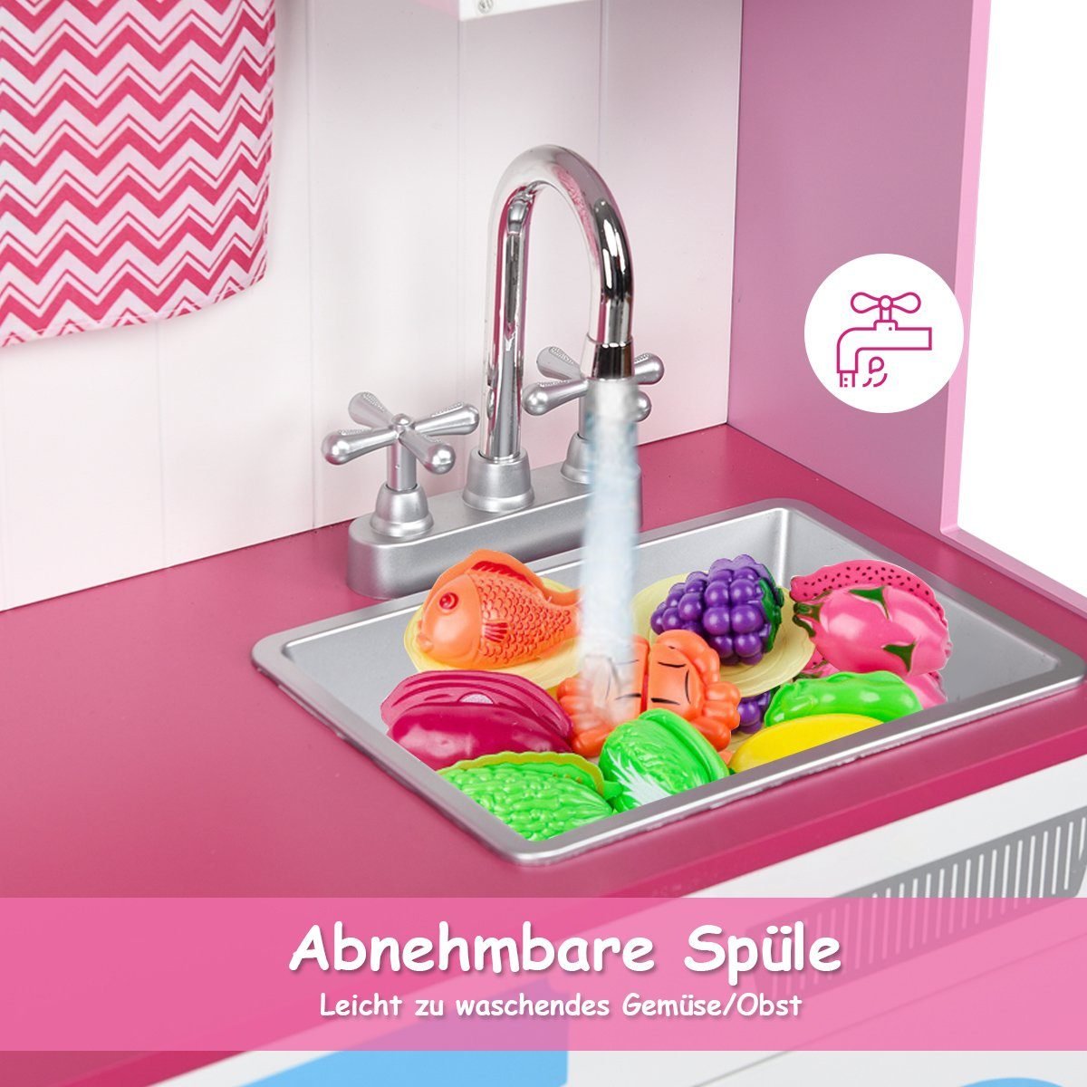 Medinė žaidimų virtuvėlė su kriaukle ir mikrobangų krosnele (Rožinė)