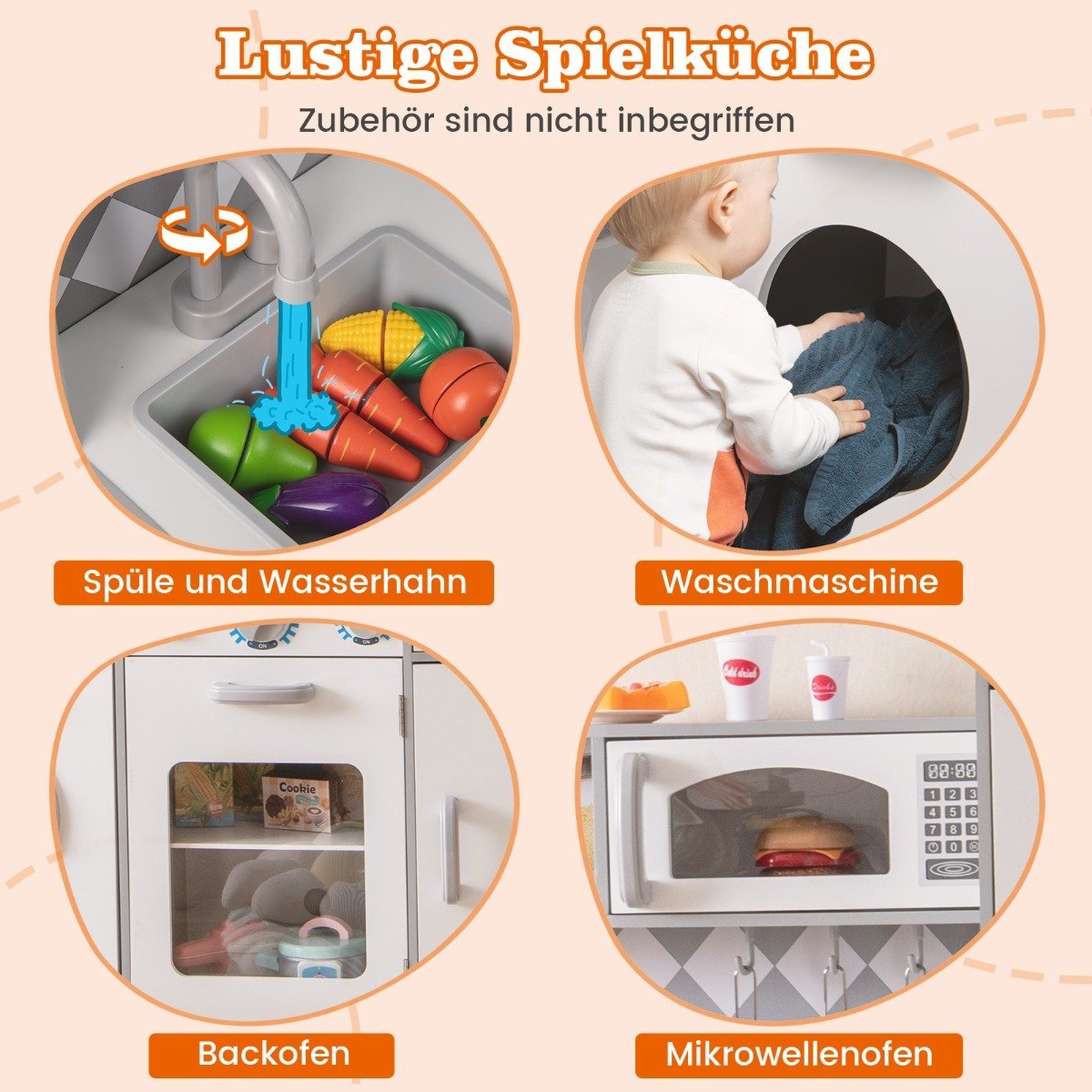 - Išsami žaidimų patirtis su įvairiomis funkcijomis: kriauklė su maišytuvu, skalbimo mašina, orkaitė, mikrobangų krosnelė, ledų gaminimo aparatas ir viryklė.