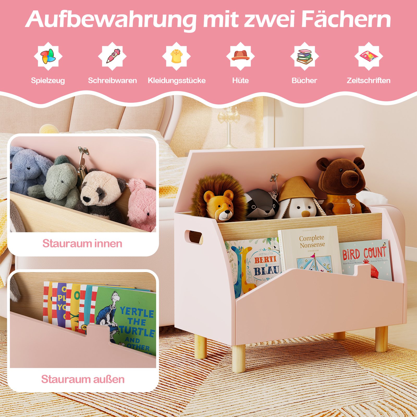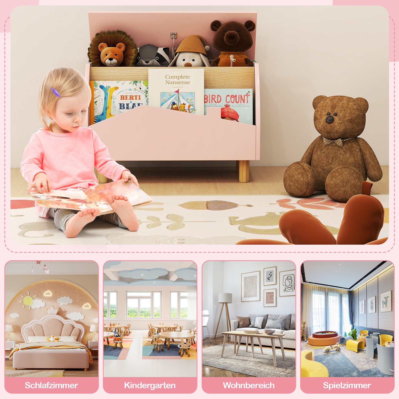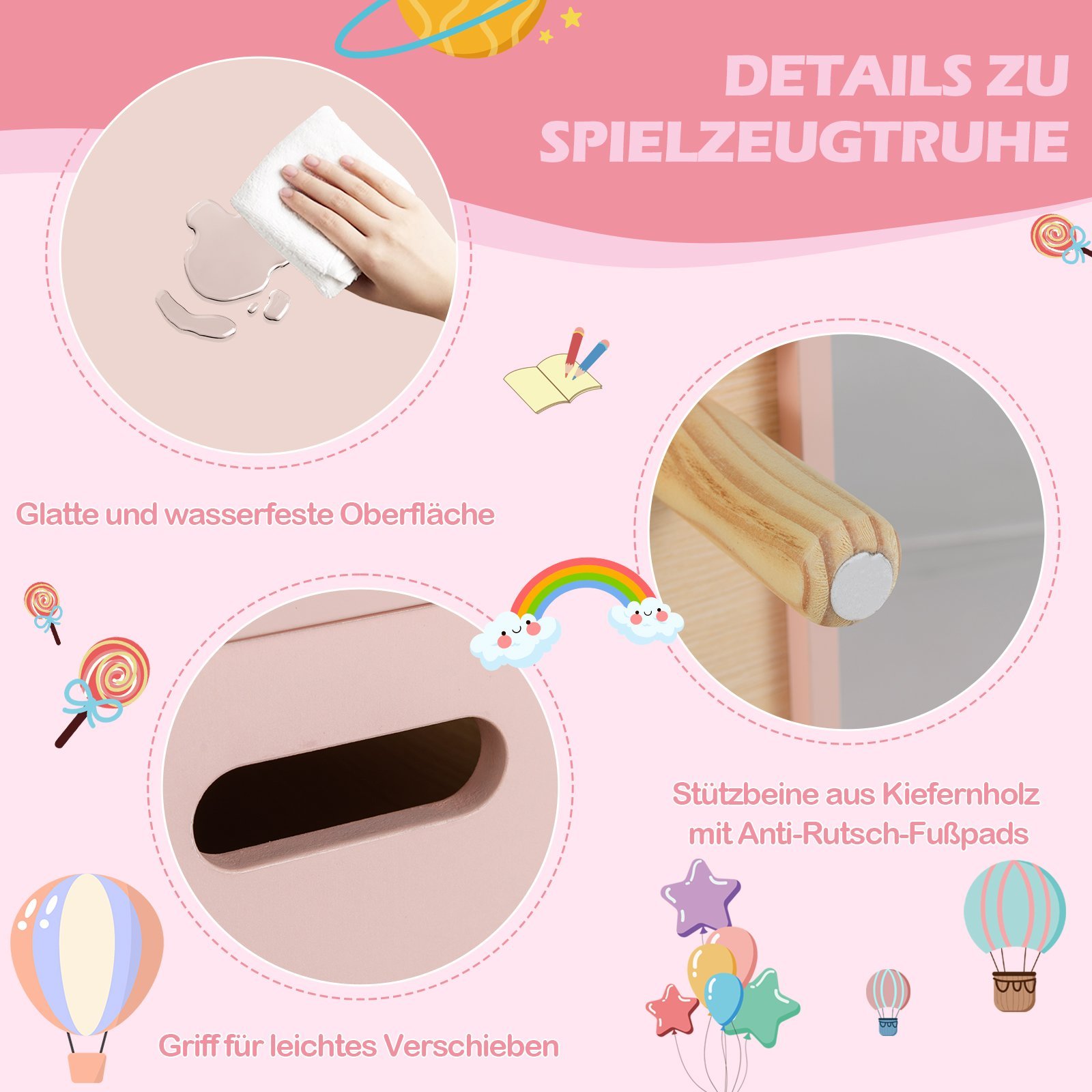Medinė žaislų dėžė su lentyna ir saugiu atverčiamu dangčiu (Rožinė)