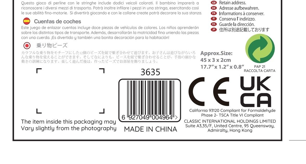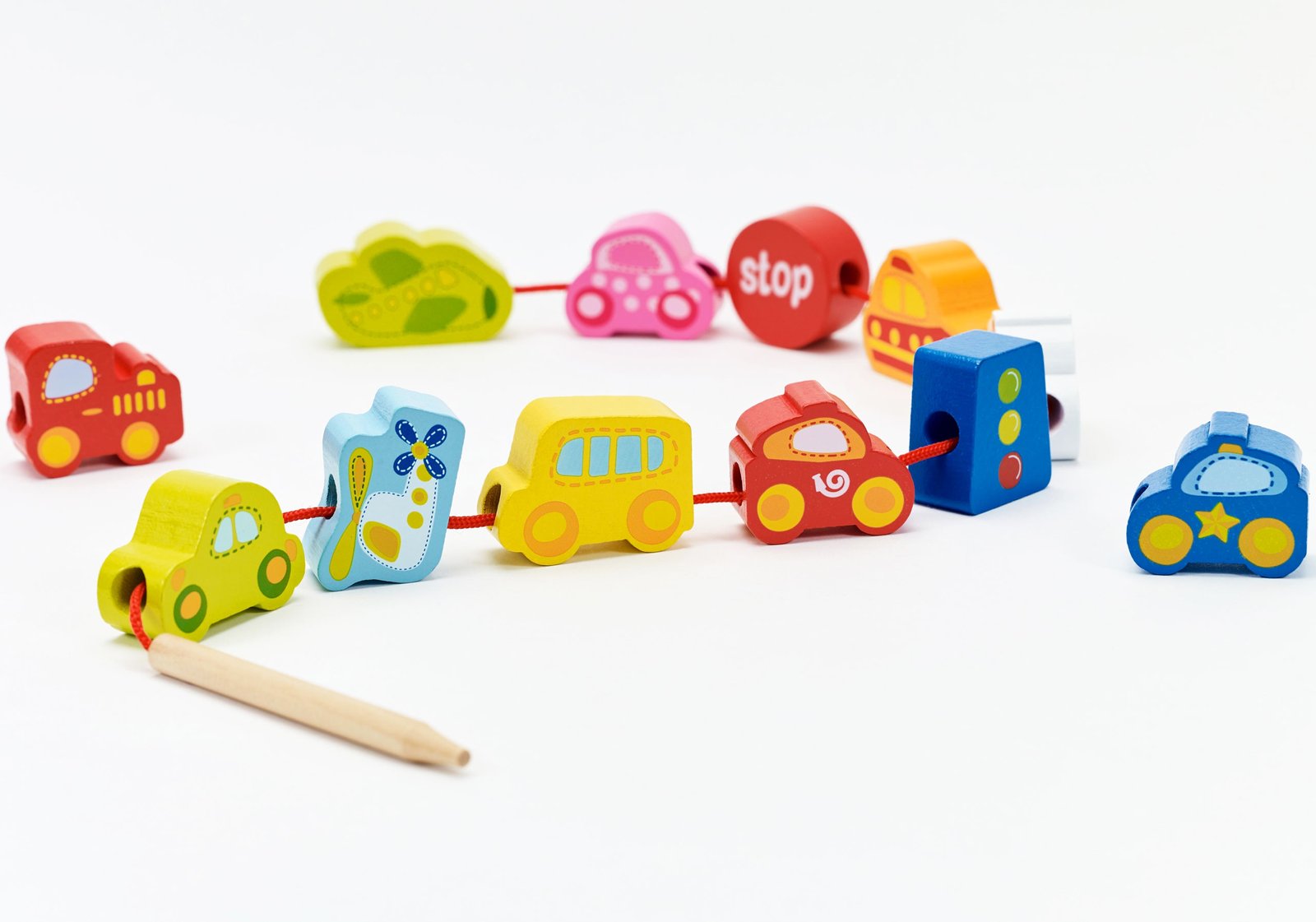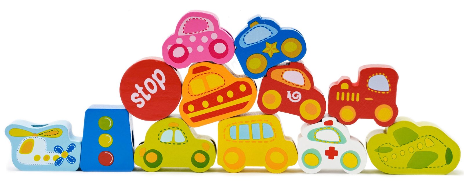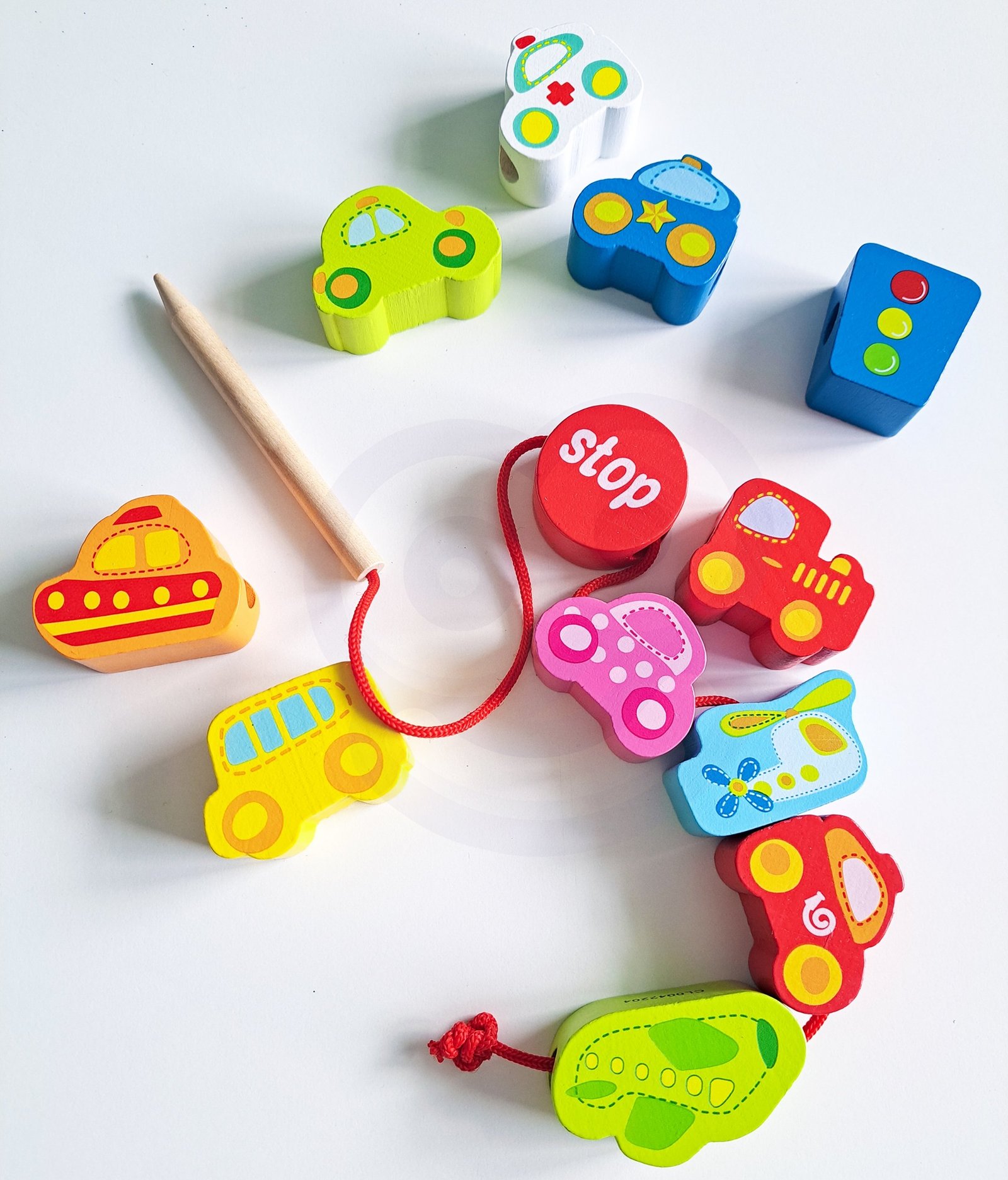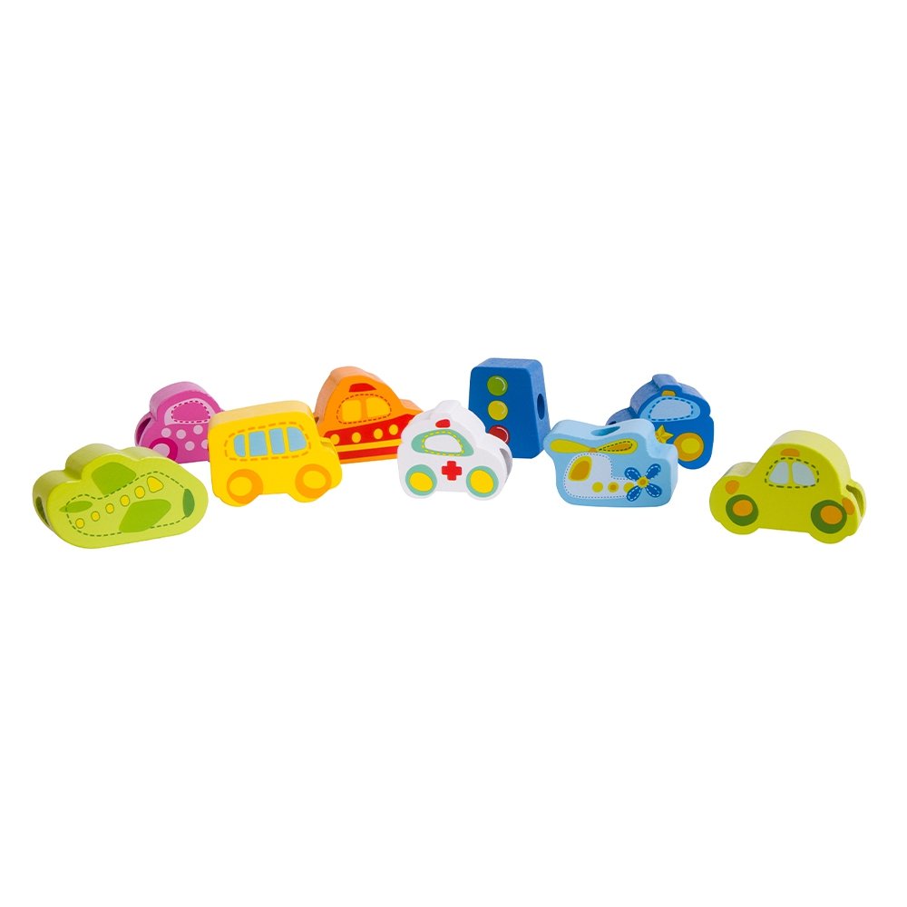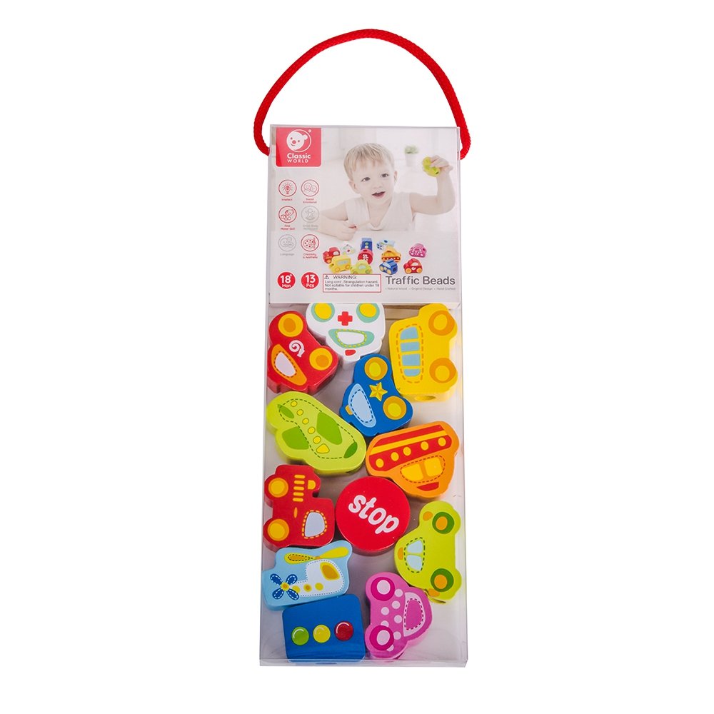 „Classic World“ medinės vėrimo kaladėlės – tai lavinamasis žaislas, skirtas mažyliams nuo 18 mėnesių. Rinkinį sudaro 13 spalvingų transporto priemonių formos elementų, kuriuos vaikas gali verti ant virvelės, kurdamas įvairias kompozicijas. Šis žaislas lavina smulkiąją motoriką, koncentraciją ir kūrybiškumą. Pagamintas iš natūralaus medžio, todėl užtikrina saugumą ir ilgaamžiškumą. Be to, žaidimas padeda vaikui žaismingai susipažinti su pagrindinėmis eismo taisyklėmis.
