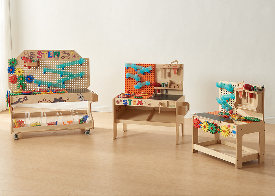 Šios medinės STEM dirbtuvės – ideali erdvė eksperimentams, lavinanti vaiko kūrybiškumą ir techninius įgūdžius. Pagamintos iš aukštos kokybės medienos, jos derina žaidimą ir mokymąsi, leisdamos vaikams susipažinti su mechanikos, inžinerijos ir fizikos principais. Realistiškai atrodančios dirbtuvės taps puikiu žaidimo elementu bet kurioje klasėje ar žaidimų kambaryje, skatindamos vaikus kurti veikiančias sistemas ir konstruoti, naudojant tikroviškai atrodančius įrankius.