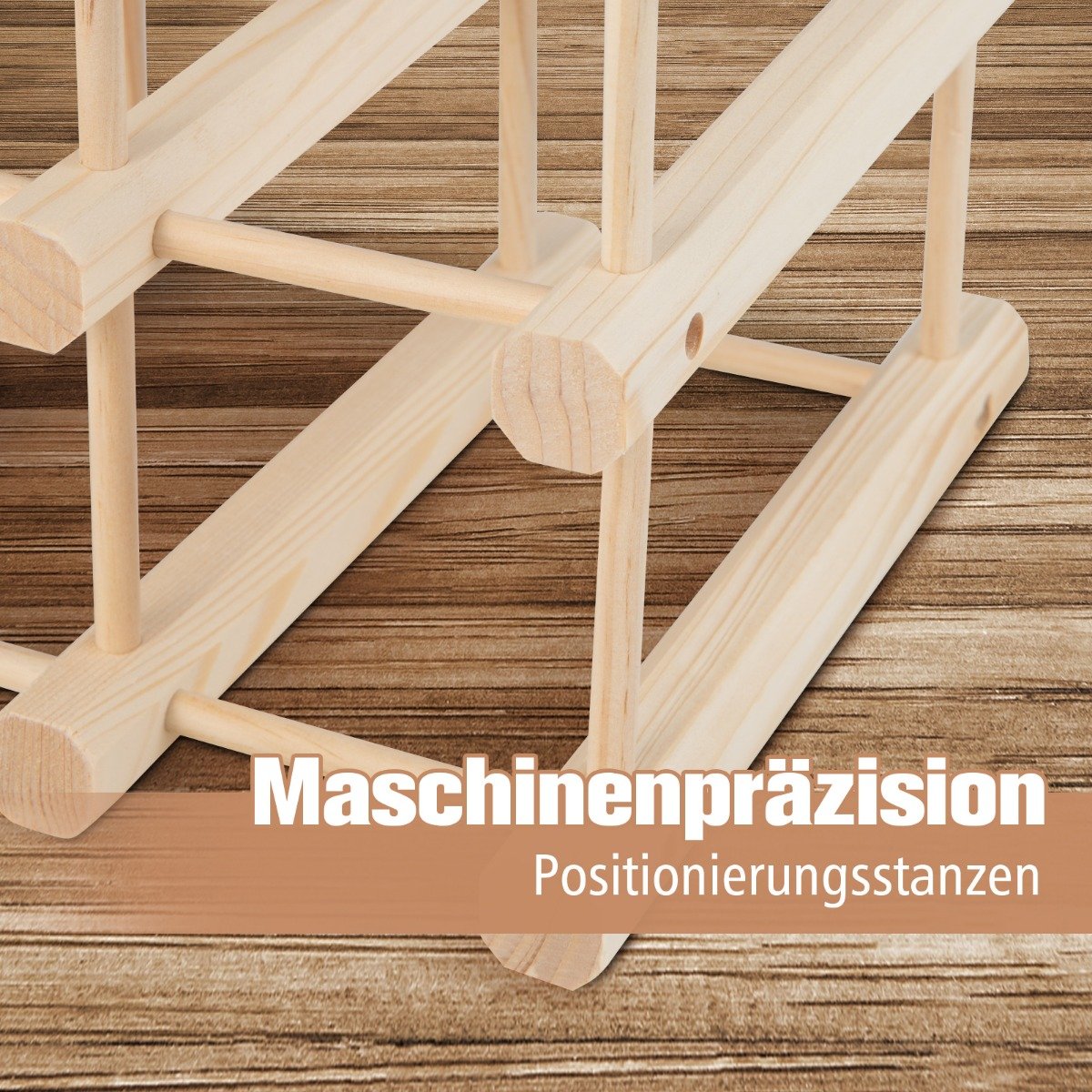 Sutvarkykite ir stilingai eksponuokite savo vyno kolekciją su mūsų mediniu vyno stoveliu! Šis stovas pasižymi modulinėmis savybėmis, kurias galite pritaikyti pagal savo poreikius. Dėl sudedamos konstrukcijos galite suformuoti įvairias konfigūracijas. Stabili ir tvirta medinė konstrukcija talpina iki 36 butelių.