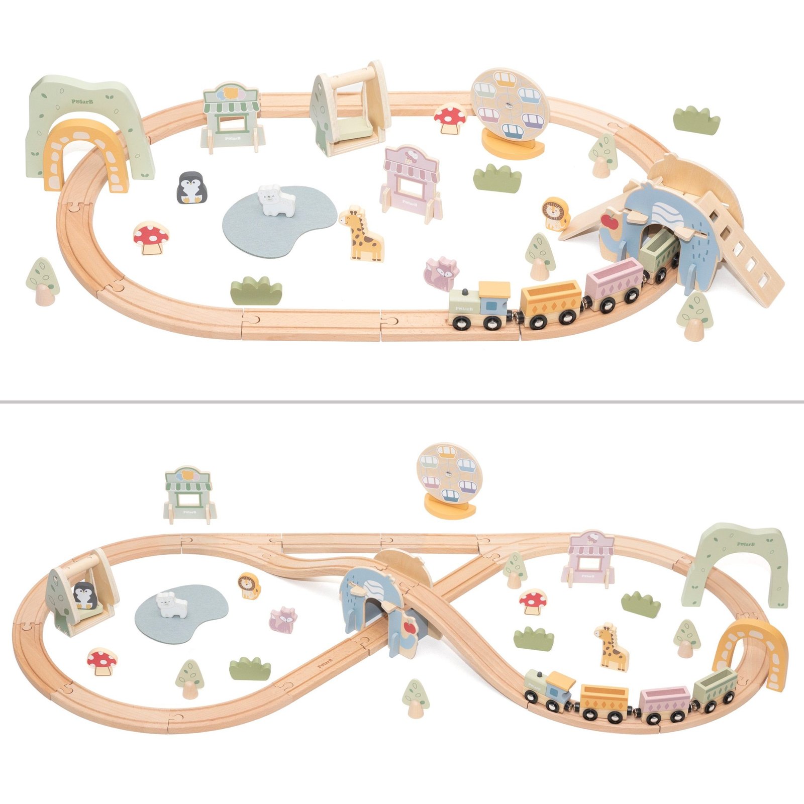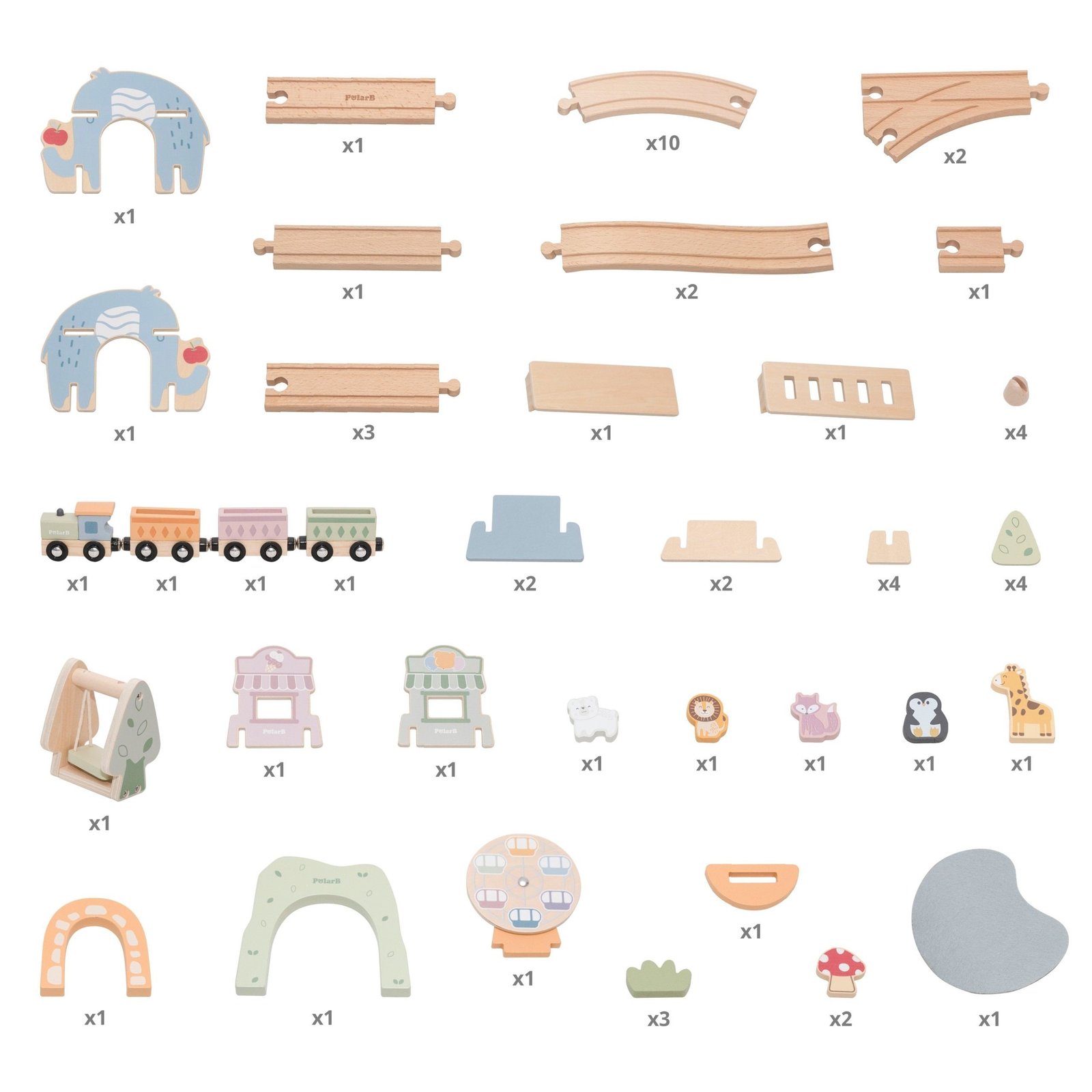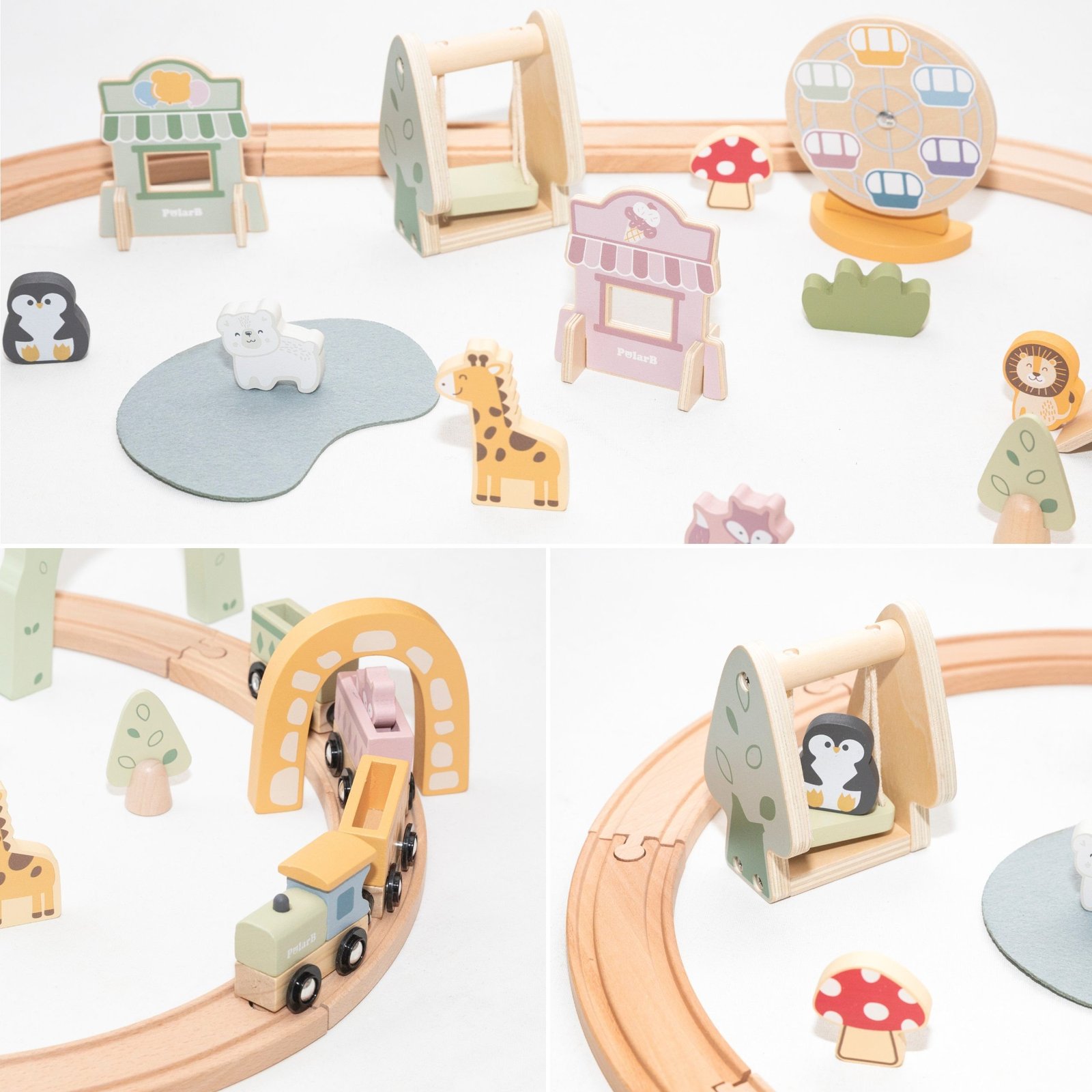 - Gyvūnų figūrėlės: keleiviai ir parko gyventojai (pvz., liūtas, pingvinas, žirafa).