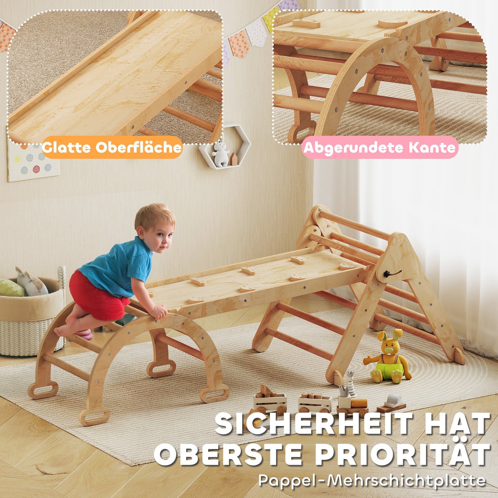 Atraskite saugią ir smagią erdvę savo vaikui su 7-in-1 laipiojimo rėmeliu! Puikiai tinka vaikams nuo 1,5 iki 4 metų, apima laipiojimo trikampį, čiuožyklos lentą ir laipiojimo lanką, kurie skatina aktyvų žaidimą. Funkcijos, tokios kaip keičiama čiuožykla ir sūpuojamos lanko kopėčios, lavina pusiausvyrą, jėgą ir koordinaciją. Taupo vietą ir puikiai tinka fizinei bei kognityvinei raidai palaikyti per saugų, kūrybišką žaidimą.
