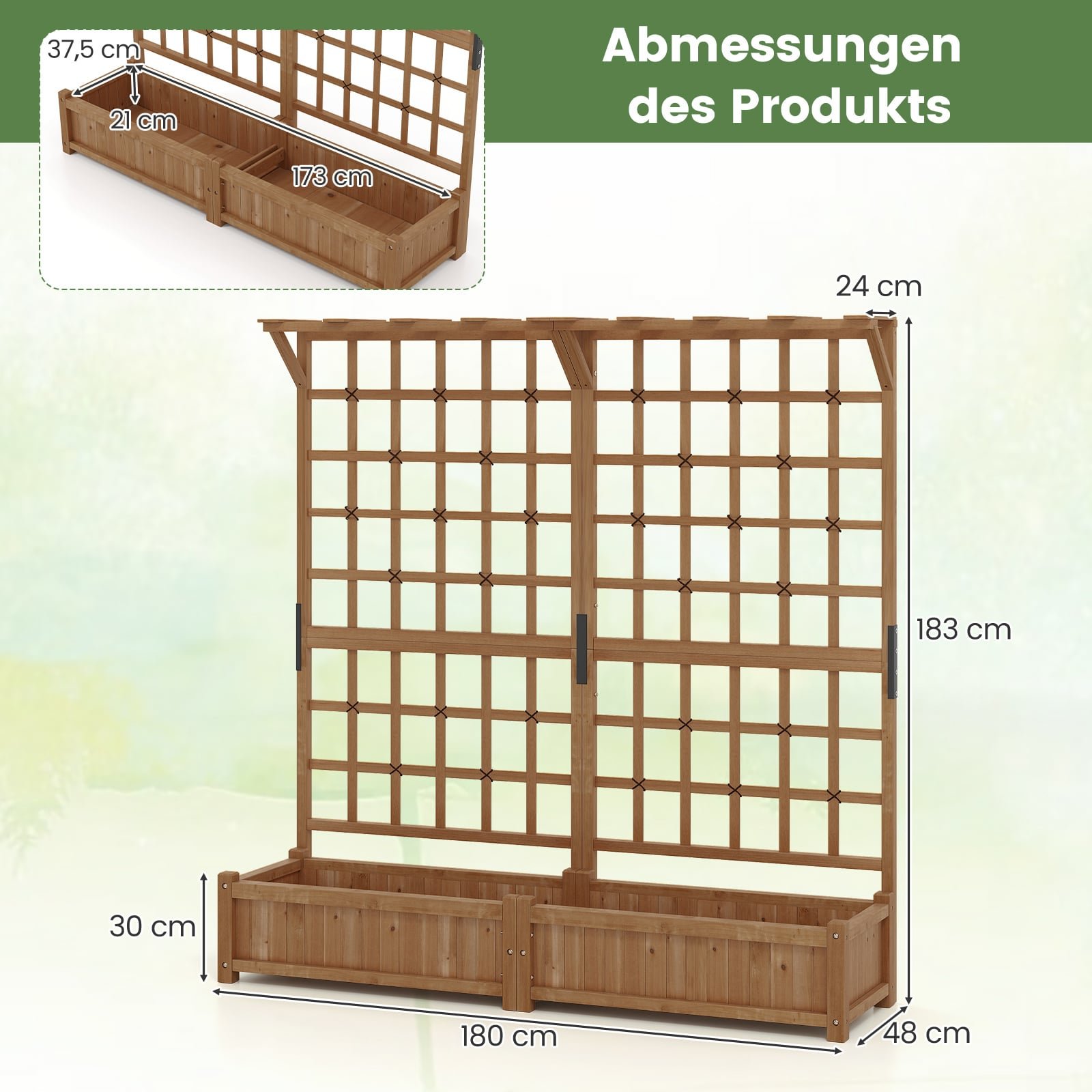 • Vidiniai lysvės matmenys (I x P x A): 173 x 37,5 x 21 cm
