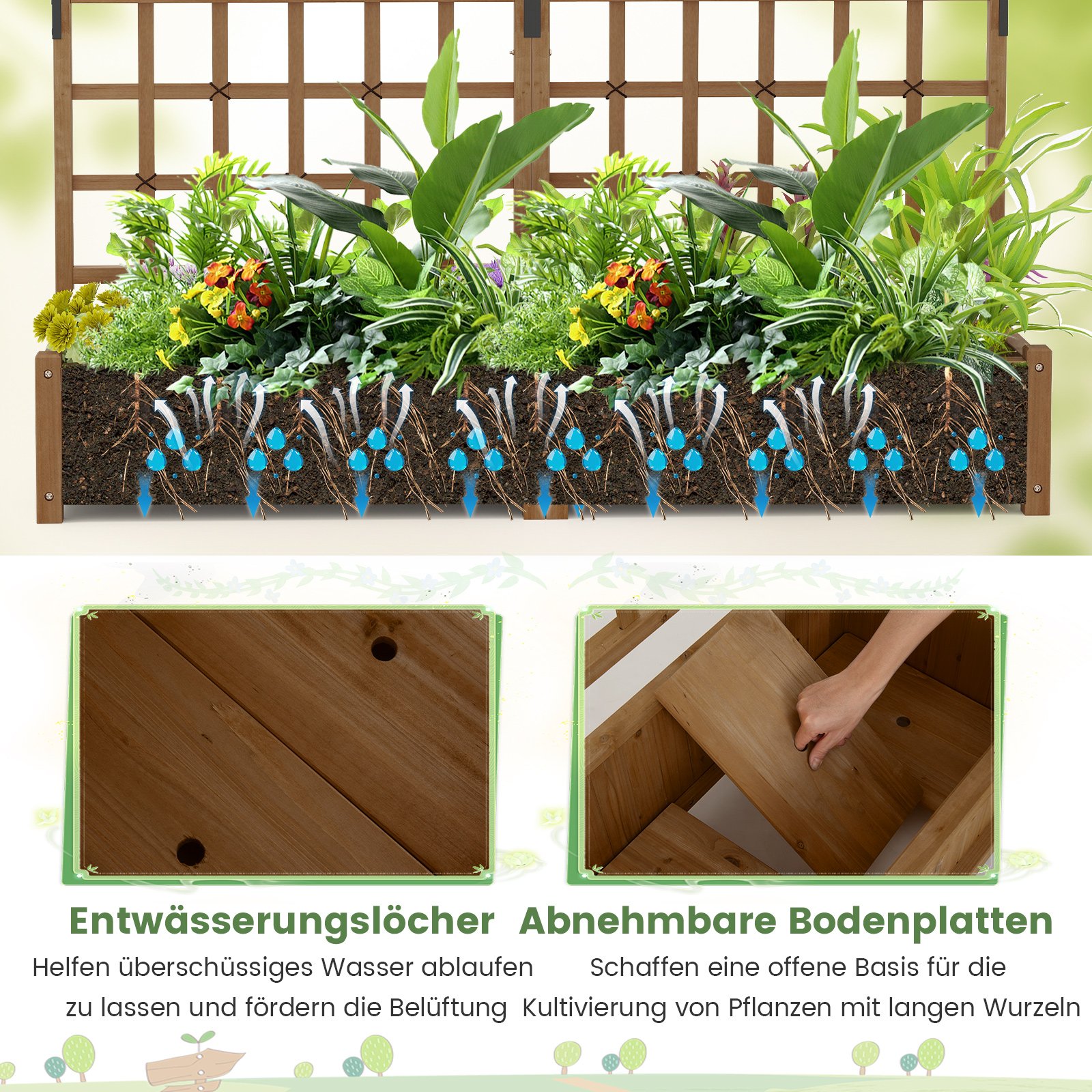 • Efektyvi drenažo sistema su 4 skylėmis ir nuimamu dugnu, užtikrinanti optimalią augalų sveikatą.