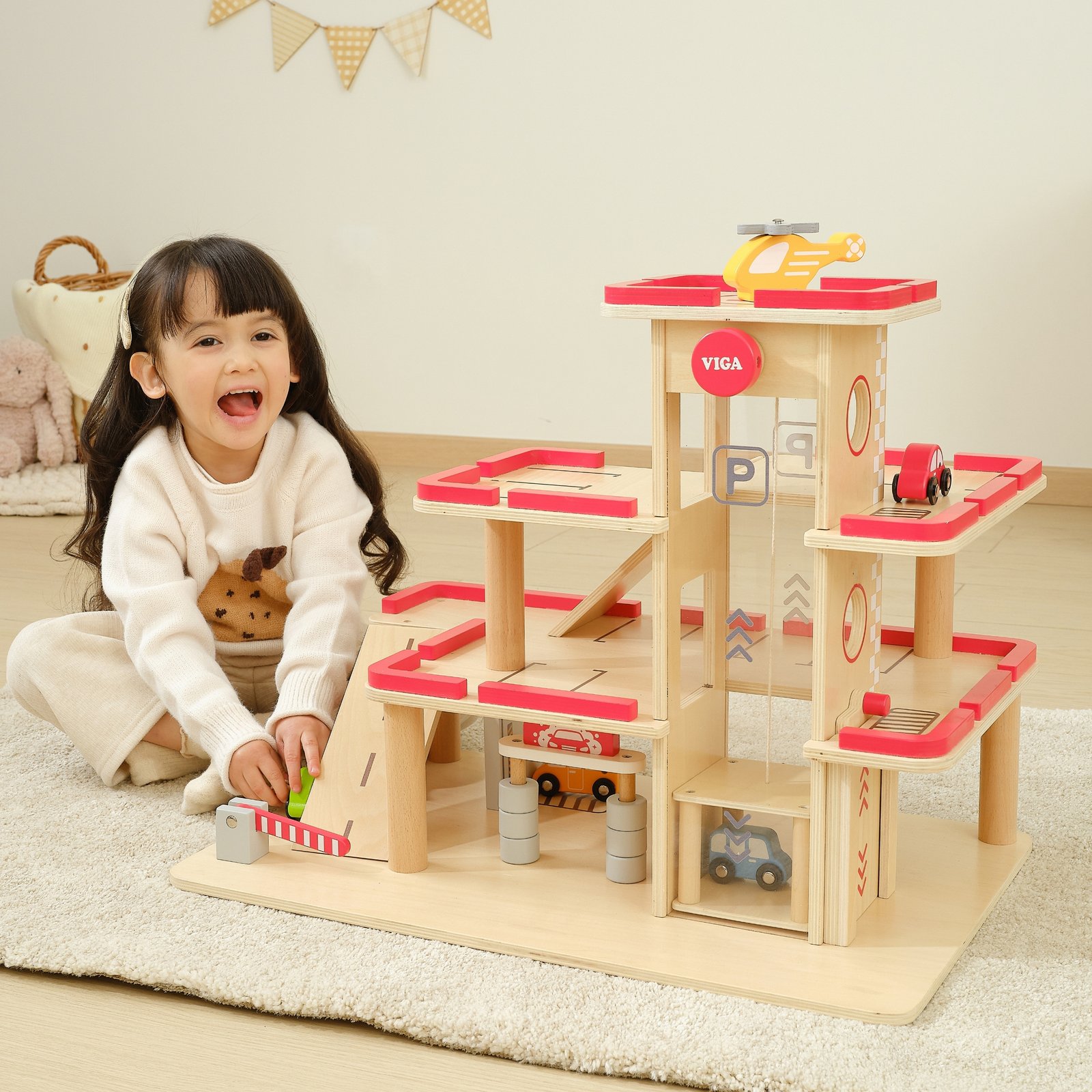 Viga medinė automobilių stovėjimo aikštelė-garažas – puiki pramoga patiems mažiausiems! Šis rinkinys, tinkamas vaikams nuo 3 metų, padeda lavinti jų vaizduotę, motoriką bei socialinius įgūdžius. Tvirta konstrukcija, tikroviškos detalės ir didelis dydis garantuoja valandų valandas smagių pramogų. Integruotas liftas, automobilių plovykla ir sraigtasparnio nusileidimo aikštelė užtikrina įvairiapusį ir įtraukiantį žaidimą.