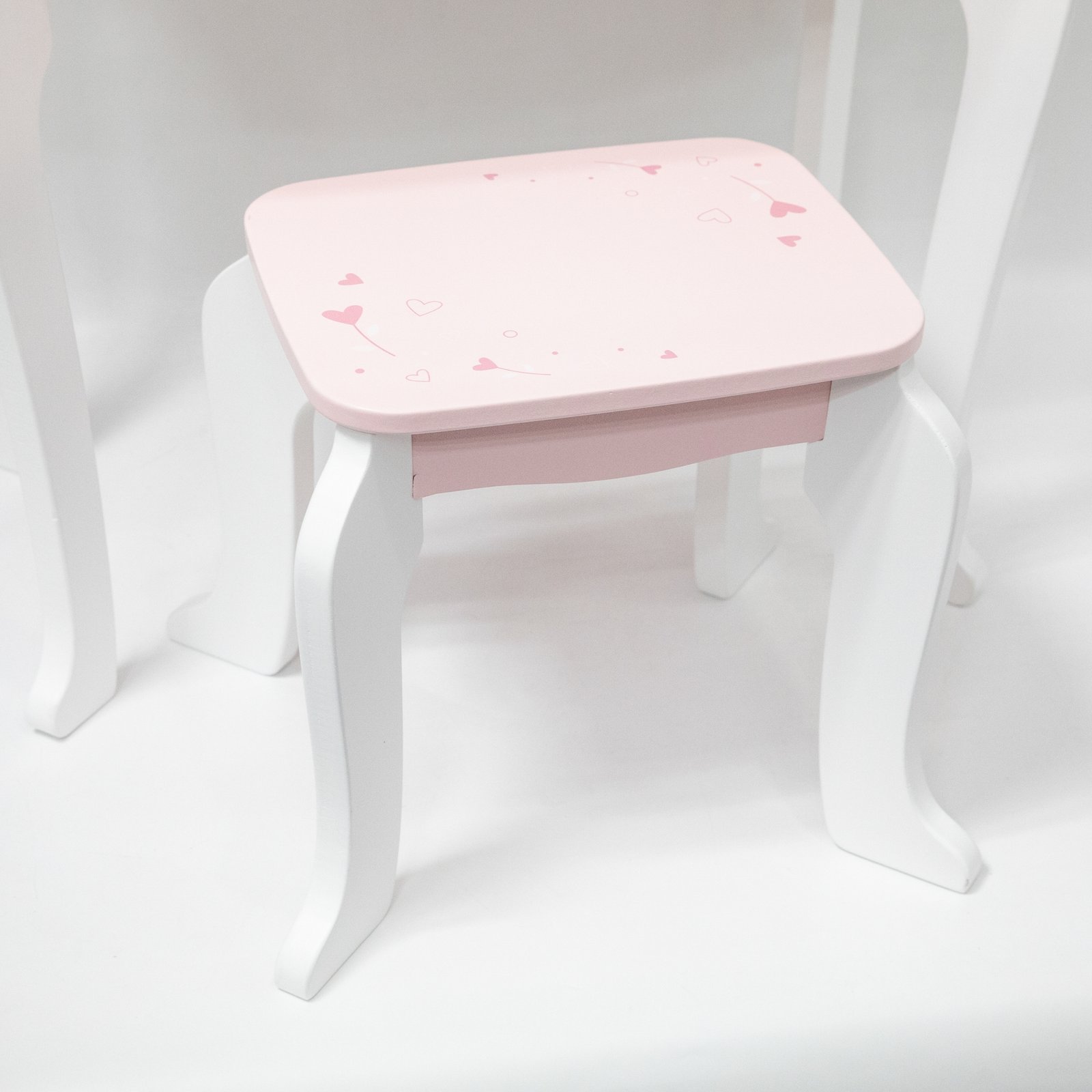 - Patogi kėdutė: pritaikyta prie tualetinio staliuko, stabili ir žavingai dekoruota.