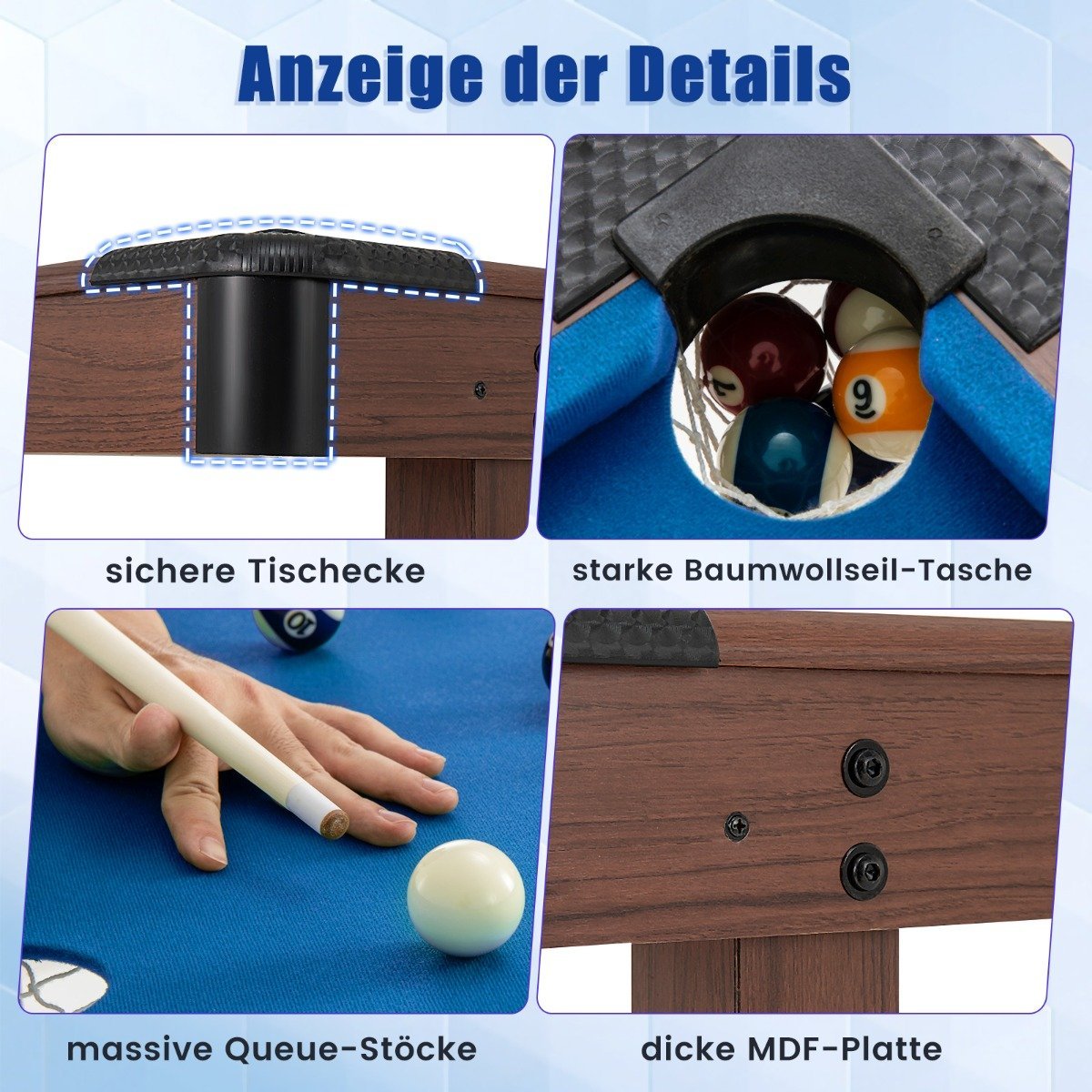Medinis biliardo stalas su priedais (Mėlyna)