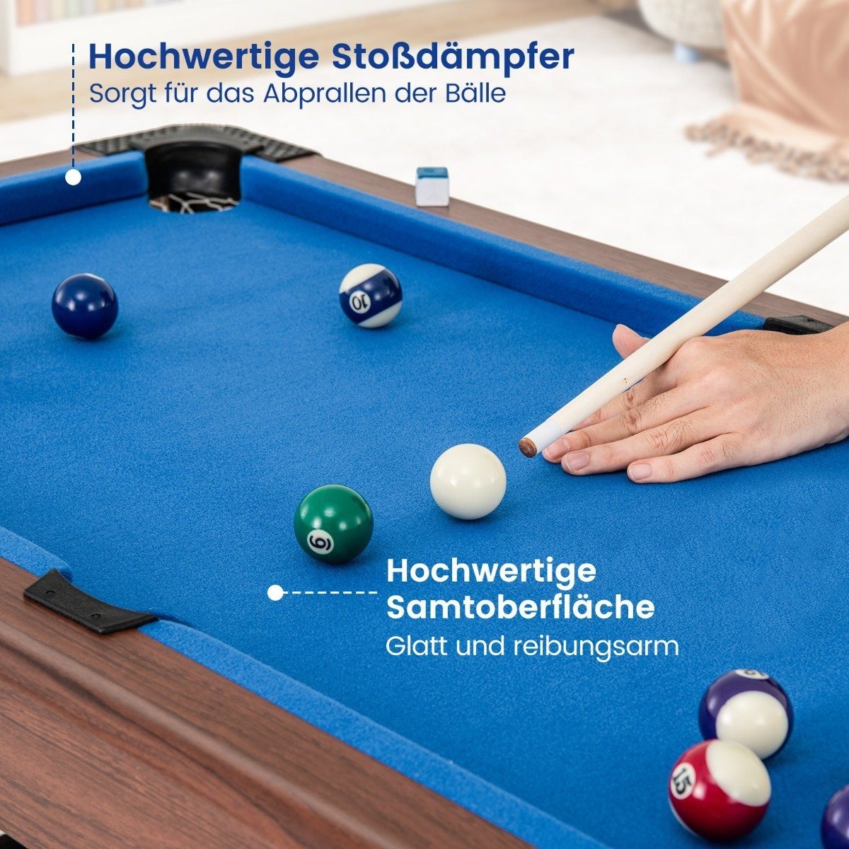 - Aukščiausios kokybės aksominis paviršius užtikrina sklandų ir tikslų kamuoliukų judėjimą.