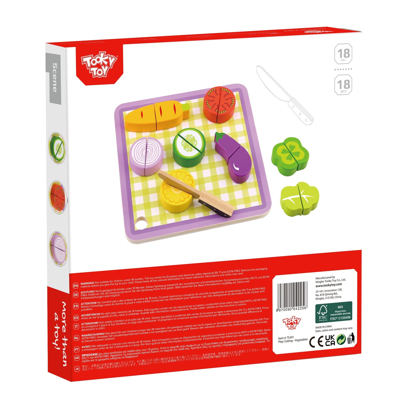 Medinių daržovių ir vaisių pjaustymo rinkinys su lentele, skirtas vaikams nuo 18 mėnesių, puikiai tinka tiek darželiui, tiek namams. Rinkinį sudaro 9 mediniai vaisiai ir daržovės, padalinti į pusę ir sujungti lipukais, medinis žaislinis peilis bei spalvinga pjaustymo lentelė. Vaikai galės atkartoti kasdienes veiklas virtuvėje. Žaislas gali būti naudojamas ir kaip dėlionė, ugdanti įvairius naudingus įgūdžius. Dėl savo daugiafunkcionalumo šis žaislas suteikia plačias žaidimo galimybes. Mažylis galės įsijausti į virėjo vaidmenį savo virtuvėlėje, lavindamas kūrybiškumą.