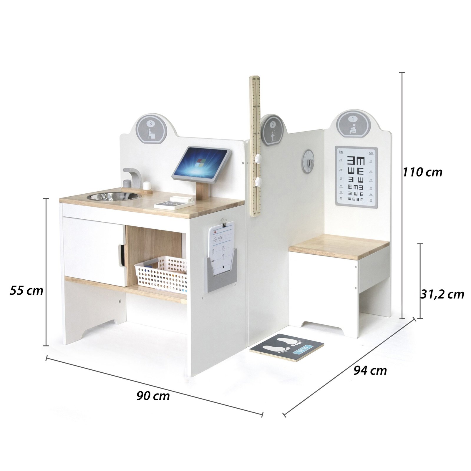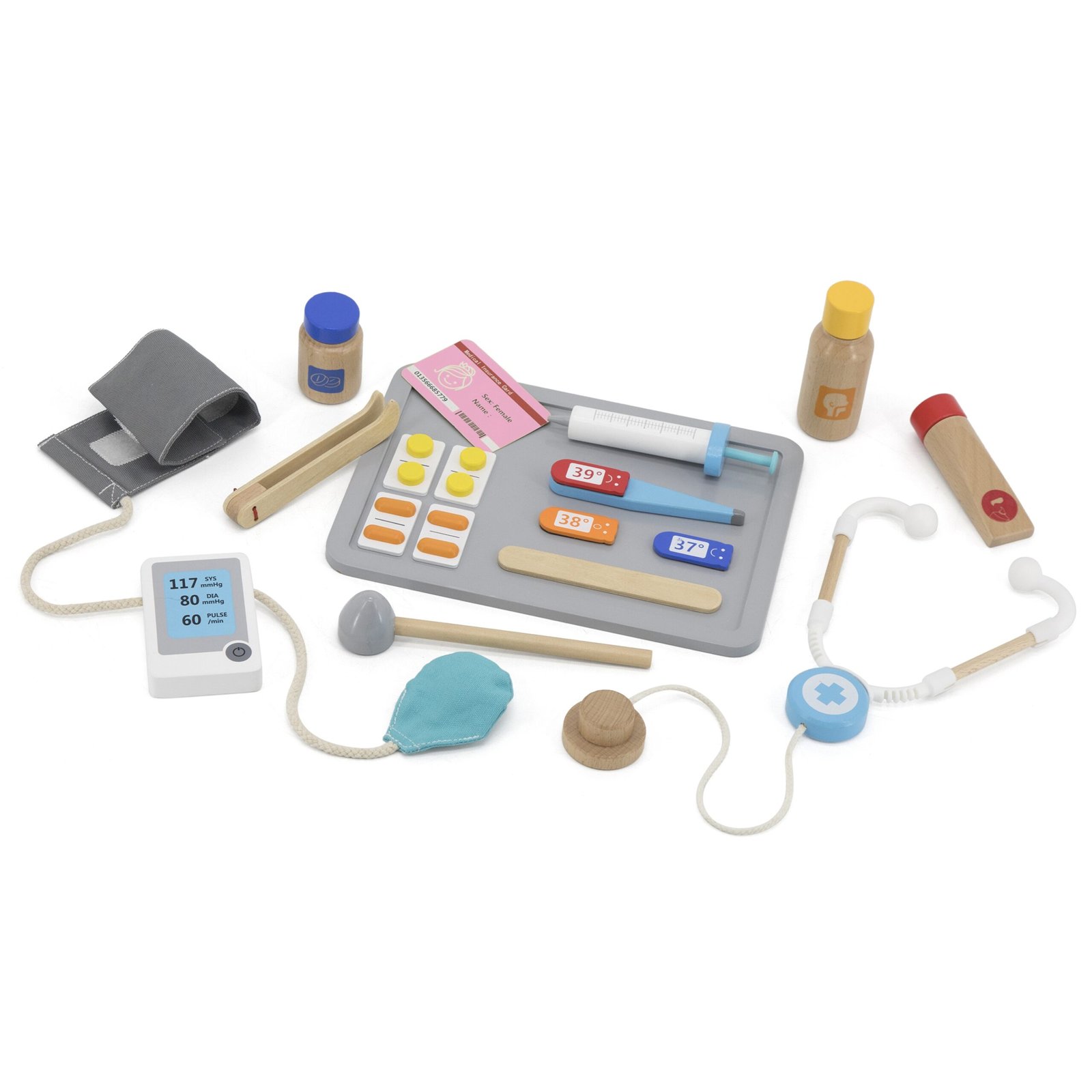 Daugiafunkcis medicinos centras „Viga“ padės jūsų vaikui artimiau susipažinti su gydytojo ar slaugytojos profesija. Rinkinį sudaro gydytojo kabinetas, laukiamasis, praustuvas ir registratūra. Komplekte taip pat rasite profesionalius medicininius prietaisus: stetoskopą, kraujospūdžio matuoklį, refleksinį plaktuką, termometrą, rentgeno tyrimams skirtą įrangą, švirkštus, tabletes pakuotėje ir buteliukus su vaistais.