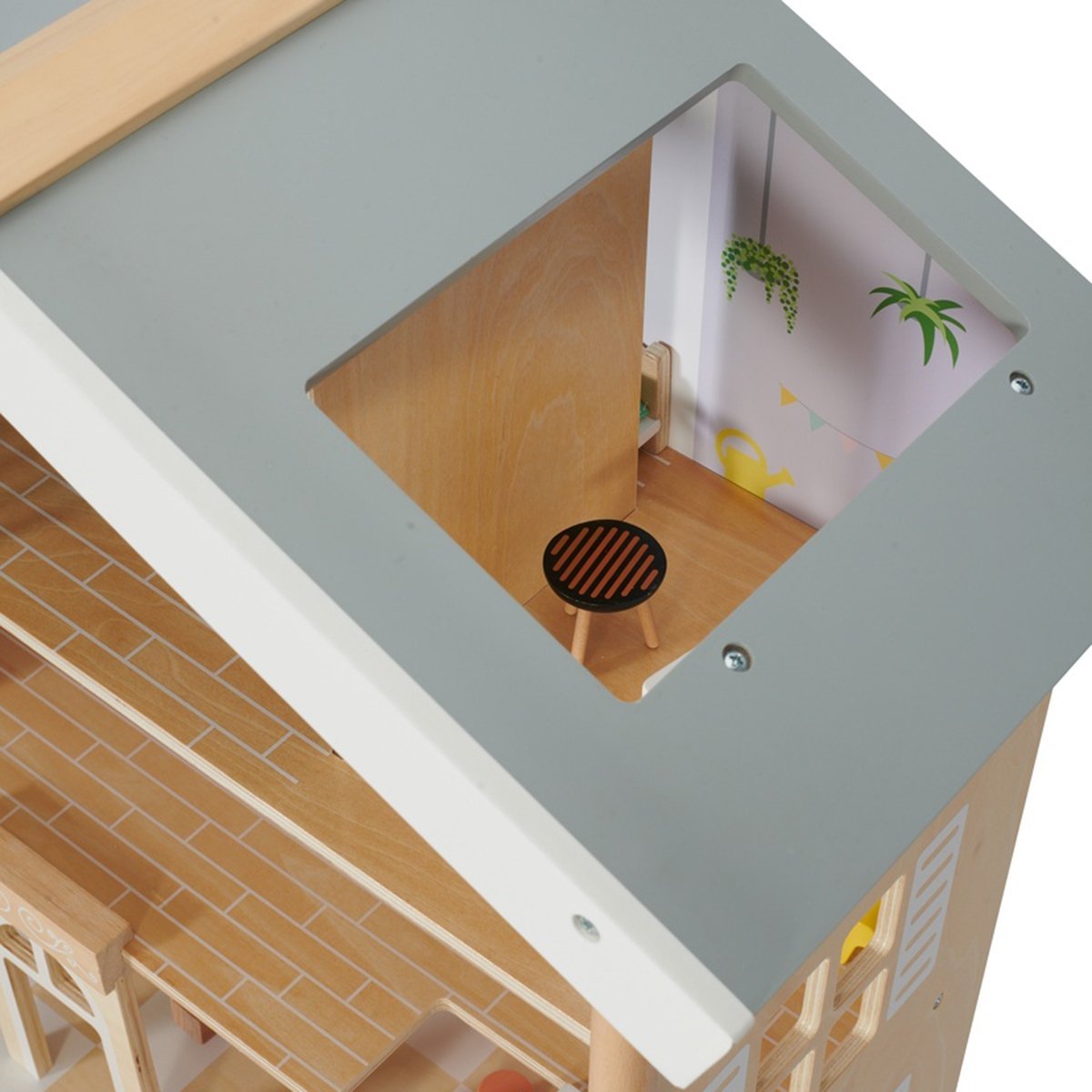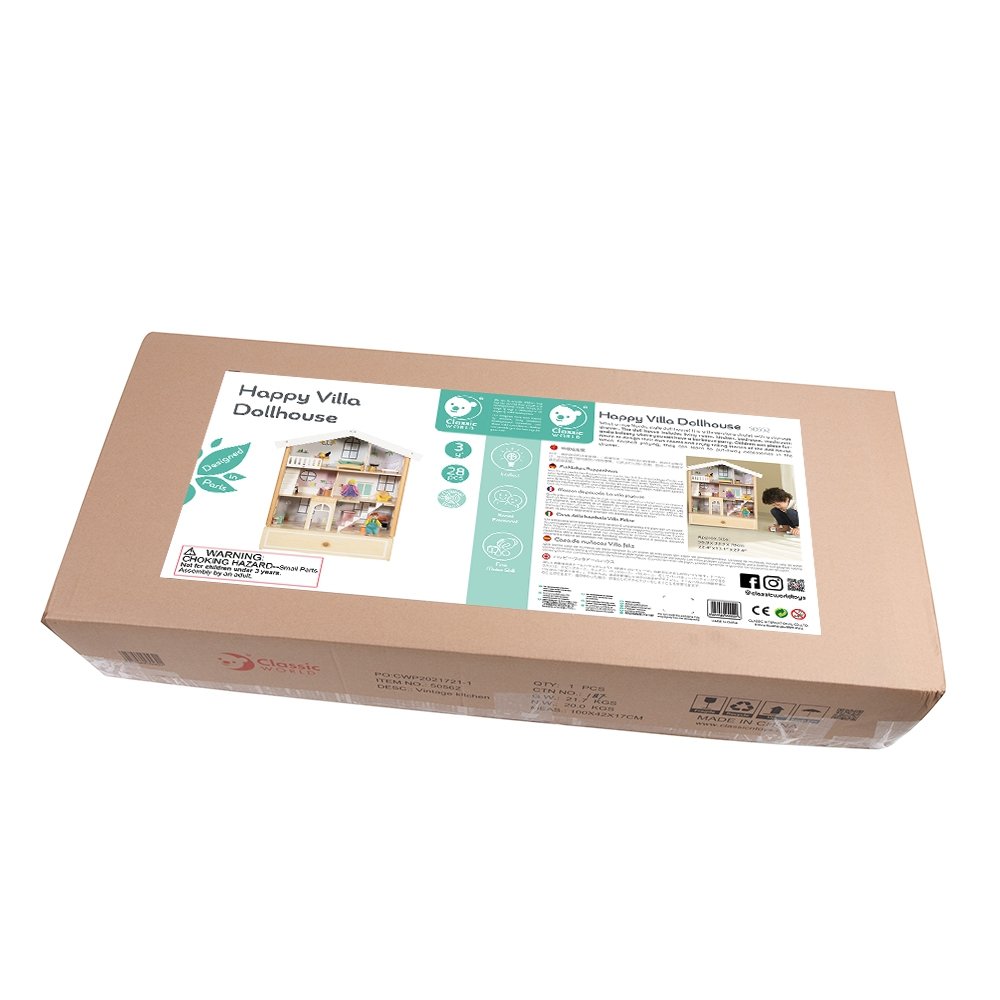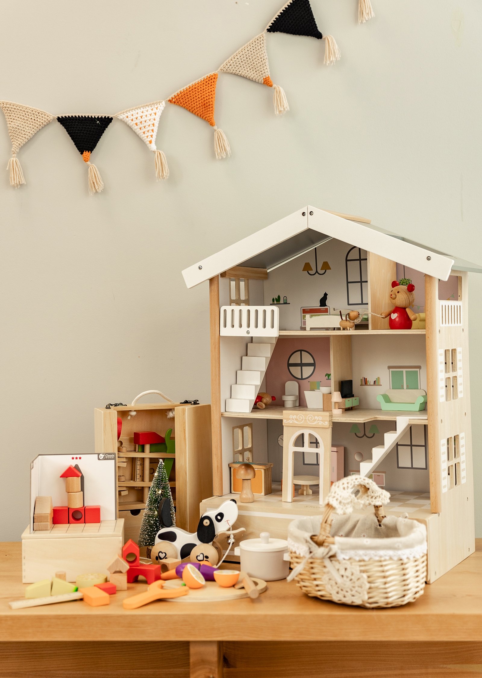 Didelis, dviejų aukštų medinis lėlių namelis – puikus pasirinkimas vaiko kambariui. Šis kruopščiai pagamintas lėlių namelis, kuriame yra 2 figūrėlės ir 28 papildomi elementai, įkvėps ilgas valandas kūrybiškų žaidimų.