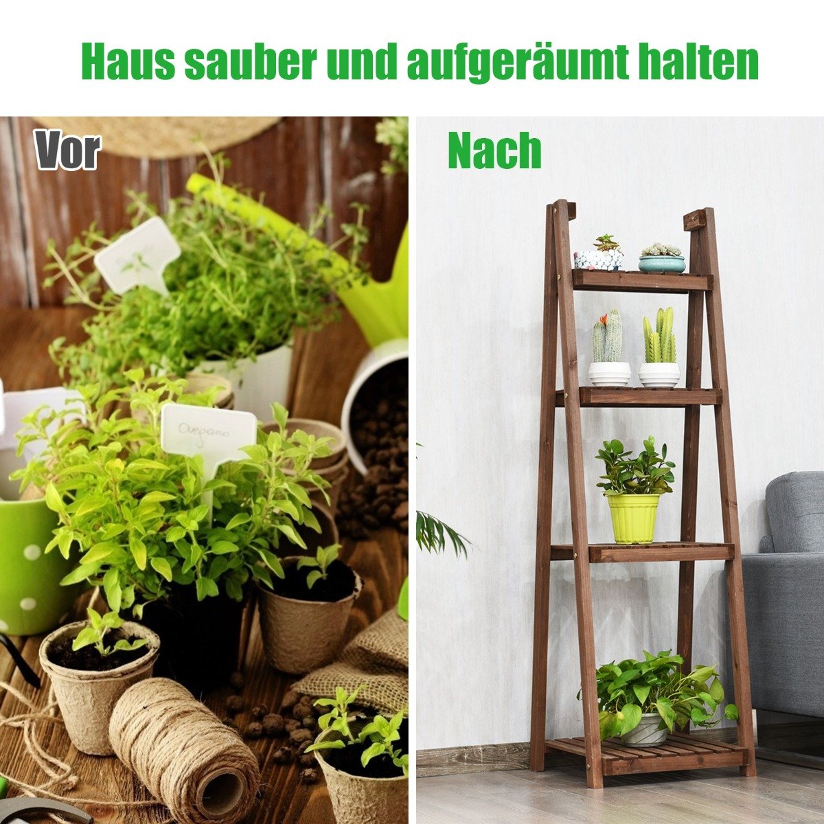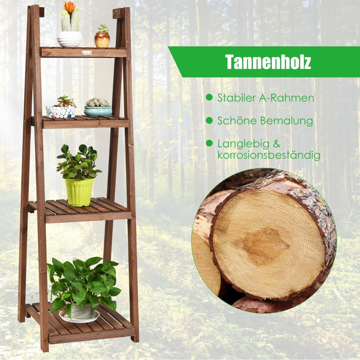 Medinis gėlių stovas su keturiomis lentynomis (Ruda)