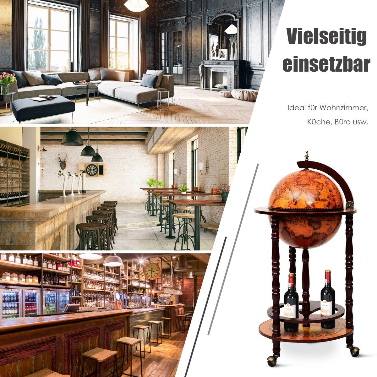 Medinis globuso formos baras-serviravimo vežimėlis (Ruda)