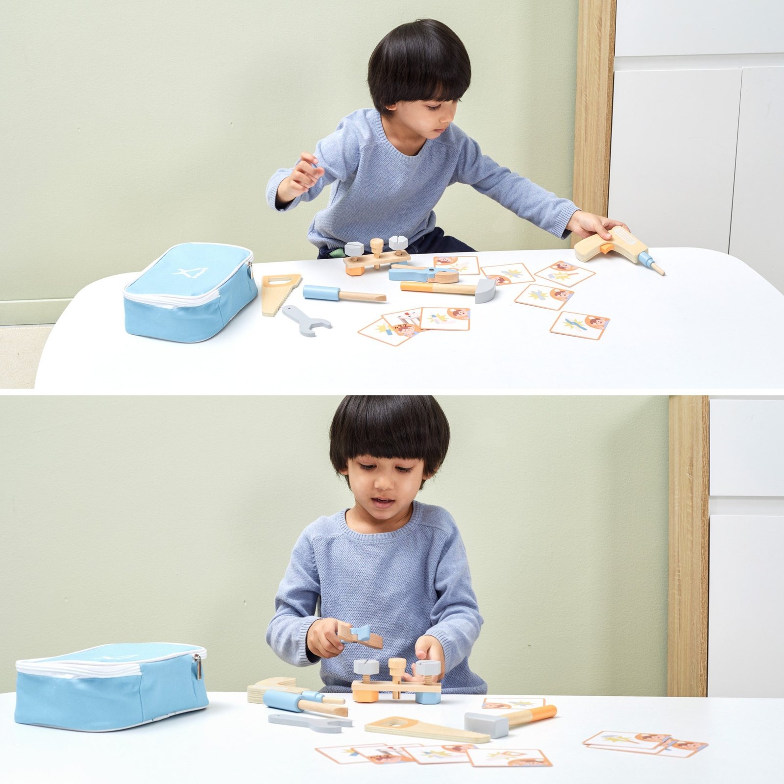 Šis medinis įrankių rinkinys puikiai tiks mažajam meistrui. Nuo šiol kiekvienas vaikas turės viską, ko reikia „remonto“ darbams atlikti: sukti, kalti ir taisyti. Rinkinys užtikrins smagų ir lavinantį laisvalaikį. Žaislas lavina pažintinius gebėjimus, padeda vaikui susipažinti su įrankiais ir jų paskirtimi, ugdo kūrybiškumą bei vaizduotę.