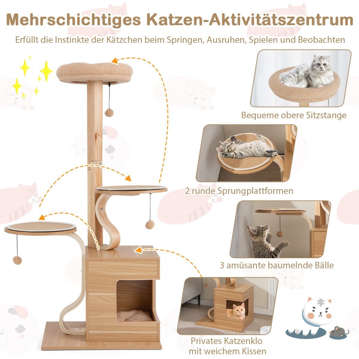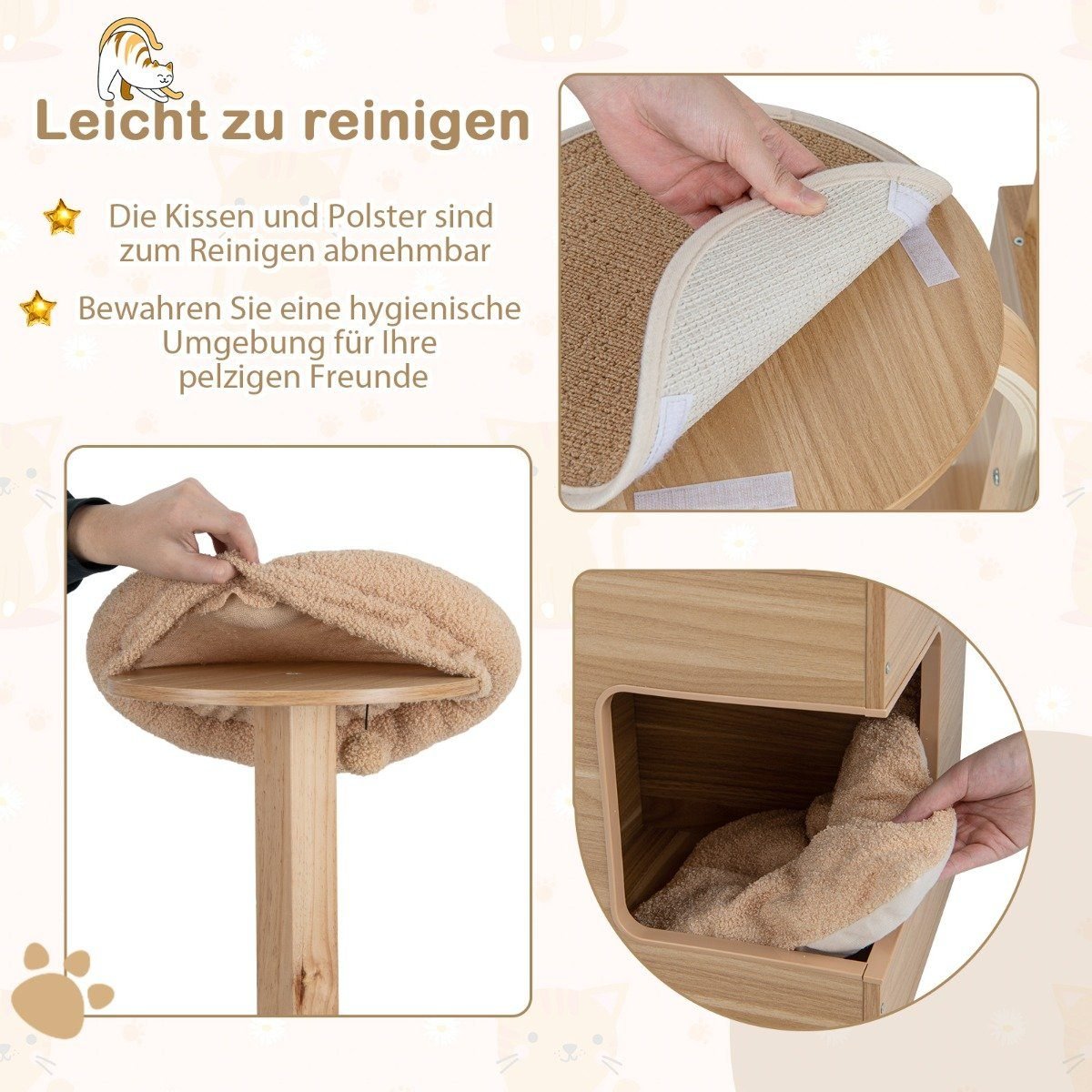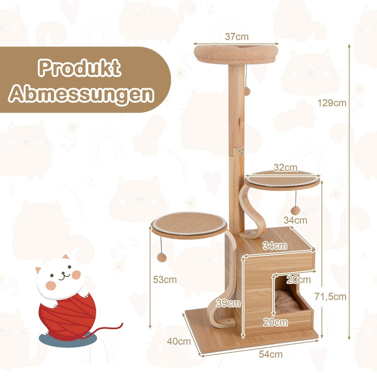 Medinis kačių bokštas su nameliu ir žaislais 129 cm (Natūrali)
