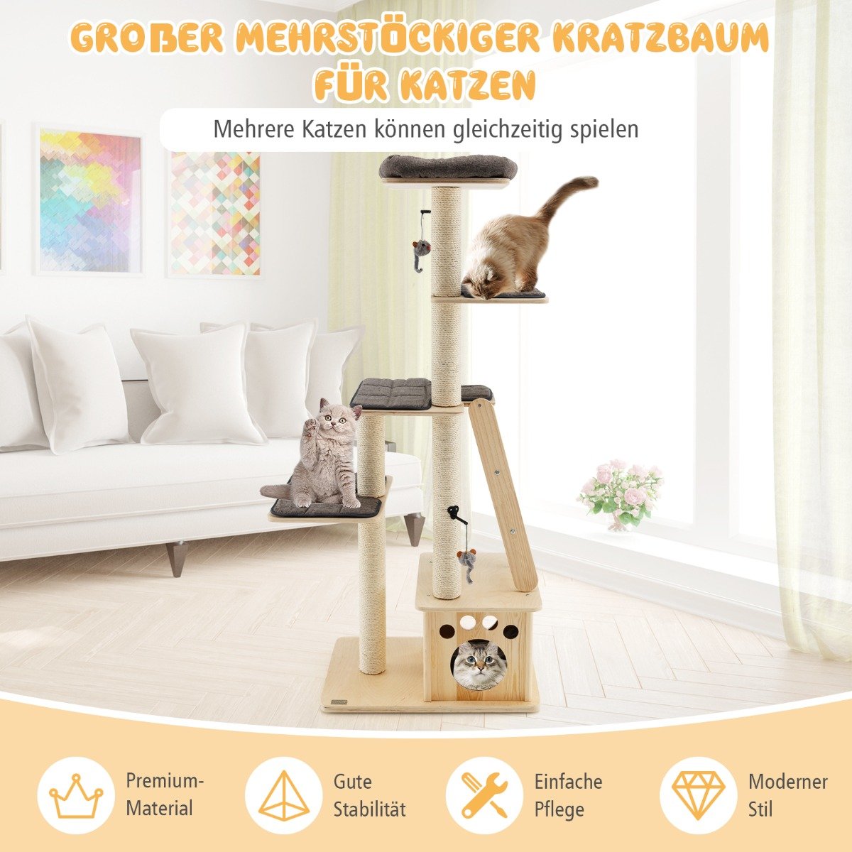 Užtikrinkite savo katei saugią, patogią ir stimuliuojančią aplinką su šiuo moderniu mediniu kačių nameliu. Sukurtas atsižvelgiant į katės poreikius, jis suteikia daug pramogų ir poilsio erdvių.