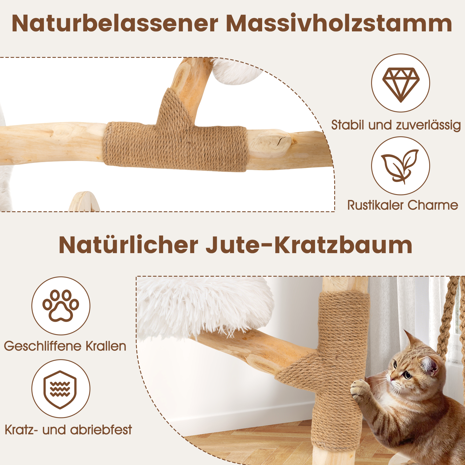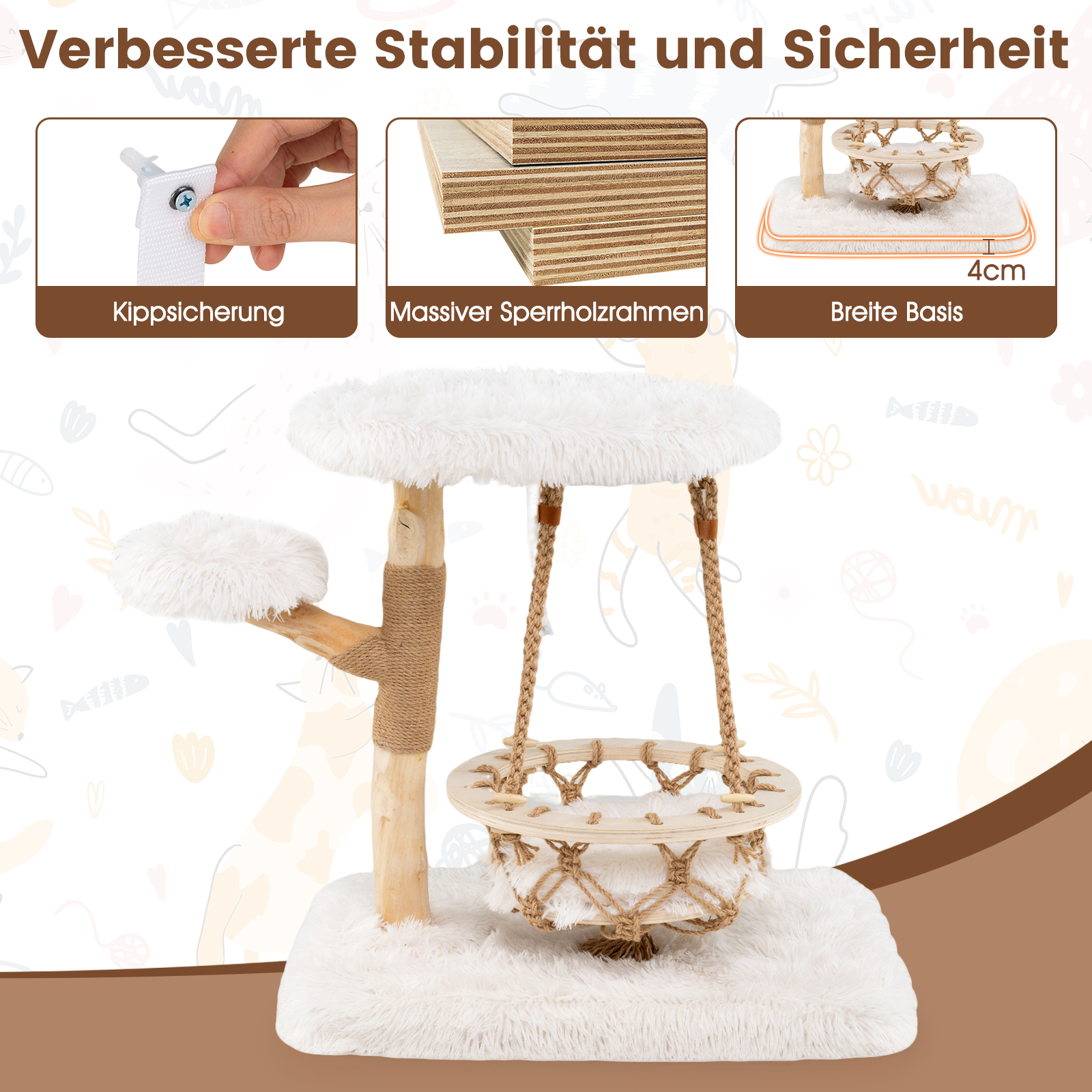 Medinis kačių namelis su hamaku ir sizaline draskykle (Balta)