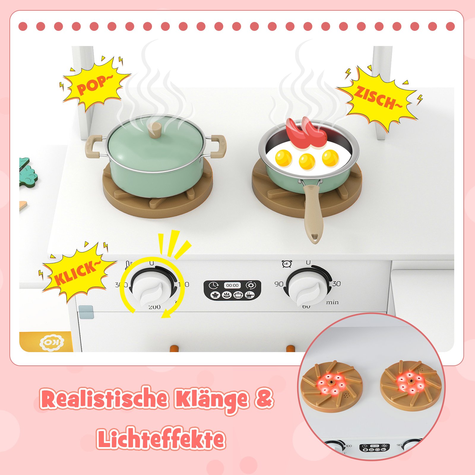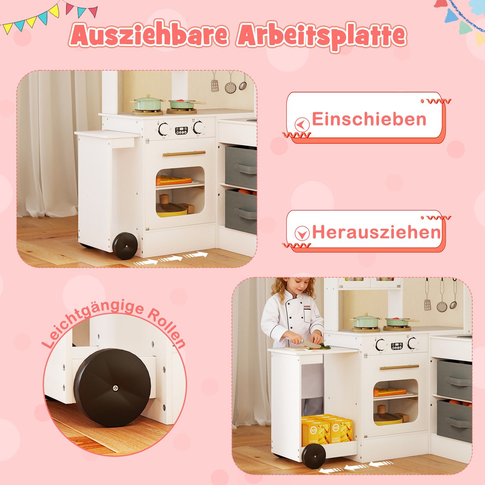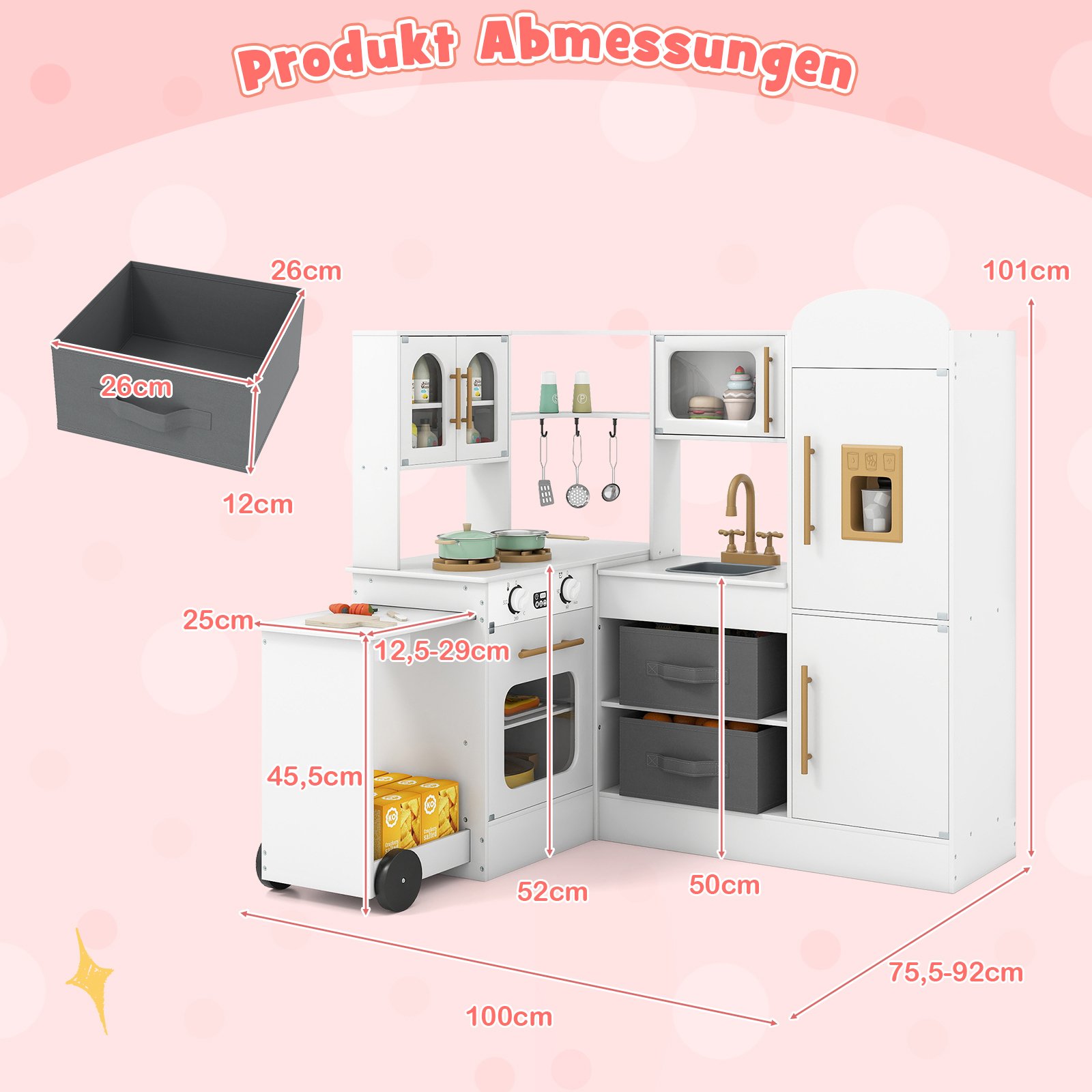 Medinis kampinis žaidimų virtuvės komplektas su garsais ir šviesomis (Balta)
