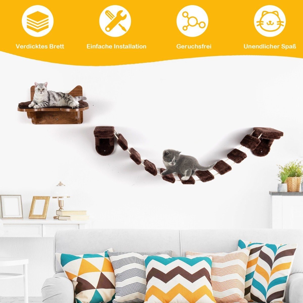 Suteikite savo katei svajonių žaidimų aikštelę su mūsų universaliu laipiojimo komplektu! Ši sistema jungia patogų gultą ir tvirtą, paminkštintą laipiojimo sienelę, leidžiančią jūsų augintiniui dūkti ir ilsėtis pakylėtoje vietoje. Tvirtinamas prie sienos, šis komplektas užtikrina stabilumą ir ilgaamžiškumą, o nuimamas audinys palengvina priežiūrą.
