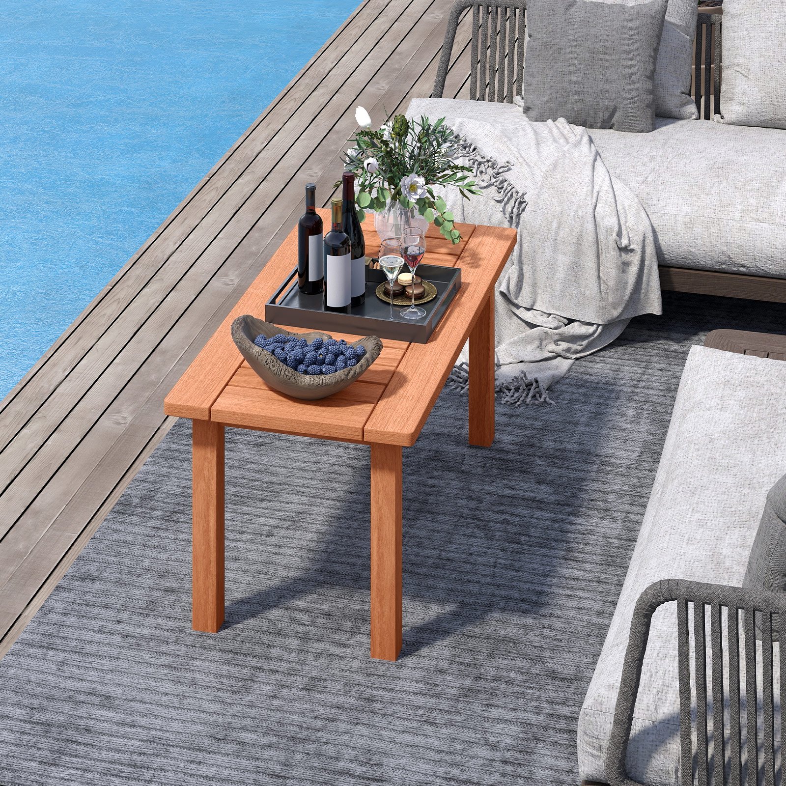 Šis kruopščiai pagamintas medinis kavos staliukas suteiks elegancijos ir funkcionalumo Jūsų namų interjerui ar lauko erdvei. Pagamintas iš aukštos kokybės, tvirtos medienos, jis užtikrina ilgaamžiškumą ir atsparumą įtrūkimams. Erdvus lentjuosčių stalviršis puikiai tinka knygoms, gėrimams ar dekoratyviniams augalams. Derindamas funkcionalumą su moderniu stiliumi, šis staliukas puikiai tinka tiek jaukiems šeimos vakarams, tiek ir smagiems susitikimams su draugais ar šventėms.