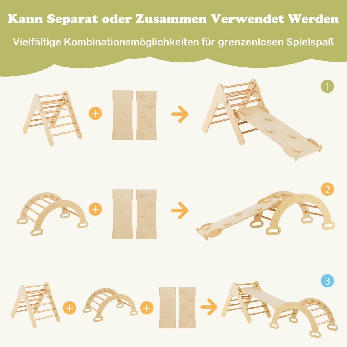Dovanokite vaikams daugybę linksmų akimirkų su šiuo mediniu laipiojimo trikampio rinkiniu! Šis žaidimų rinkinys, sudarytas iš laipiojimo trikampio, laipiojimo lanko ir rampos, garantuoja begalinį džiaugsmą mažiesiems.