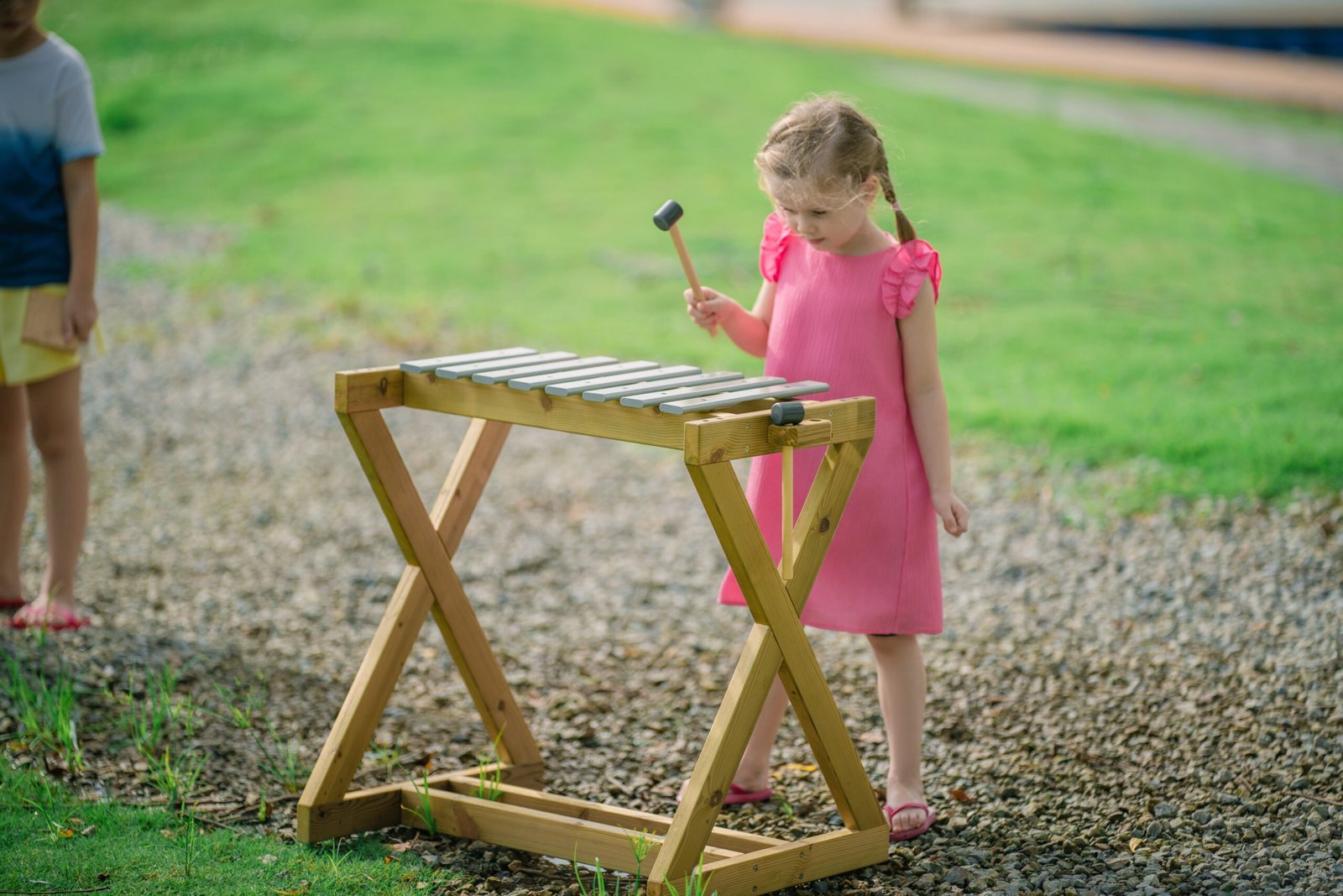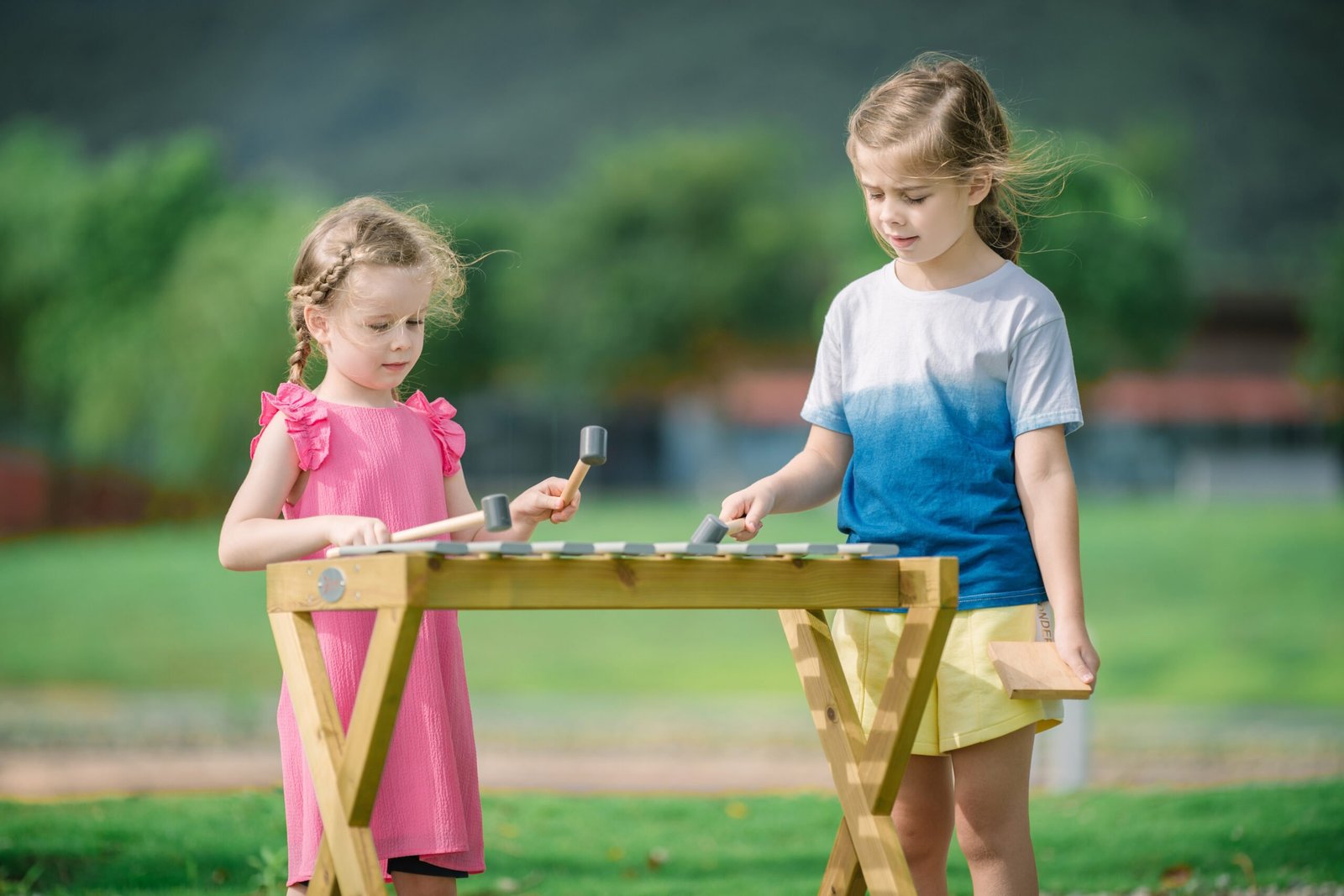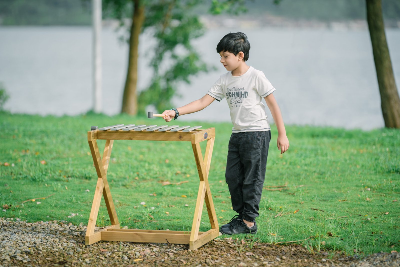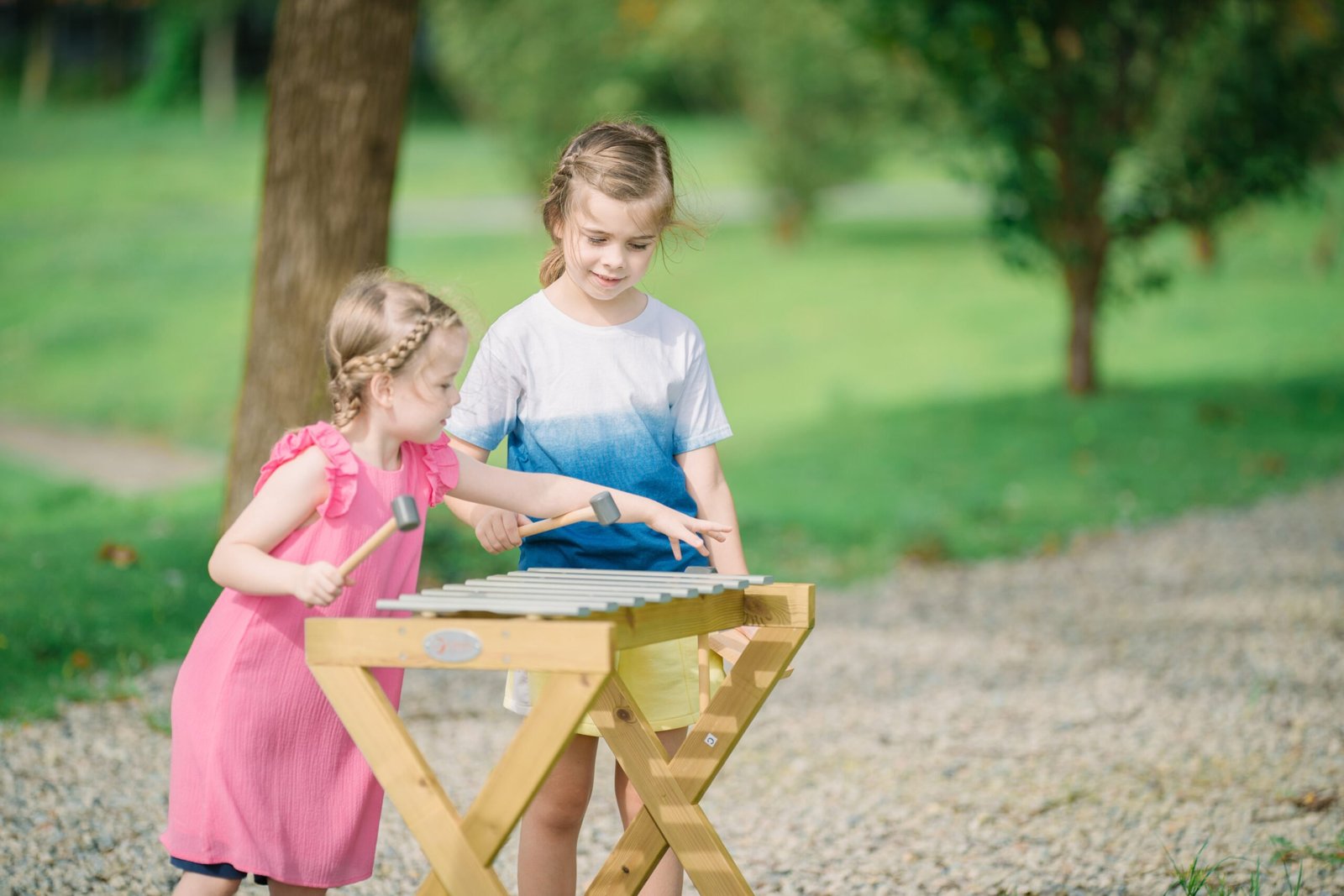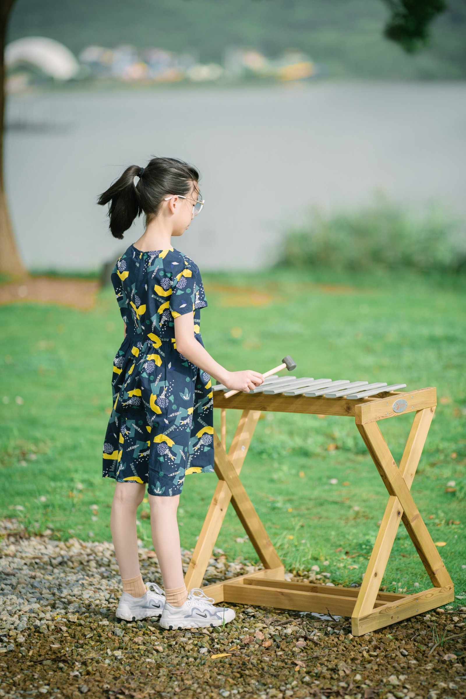 Medinis lauko metalofonas su lazdelėmis