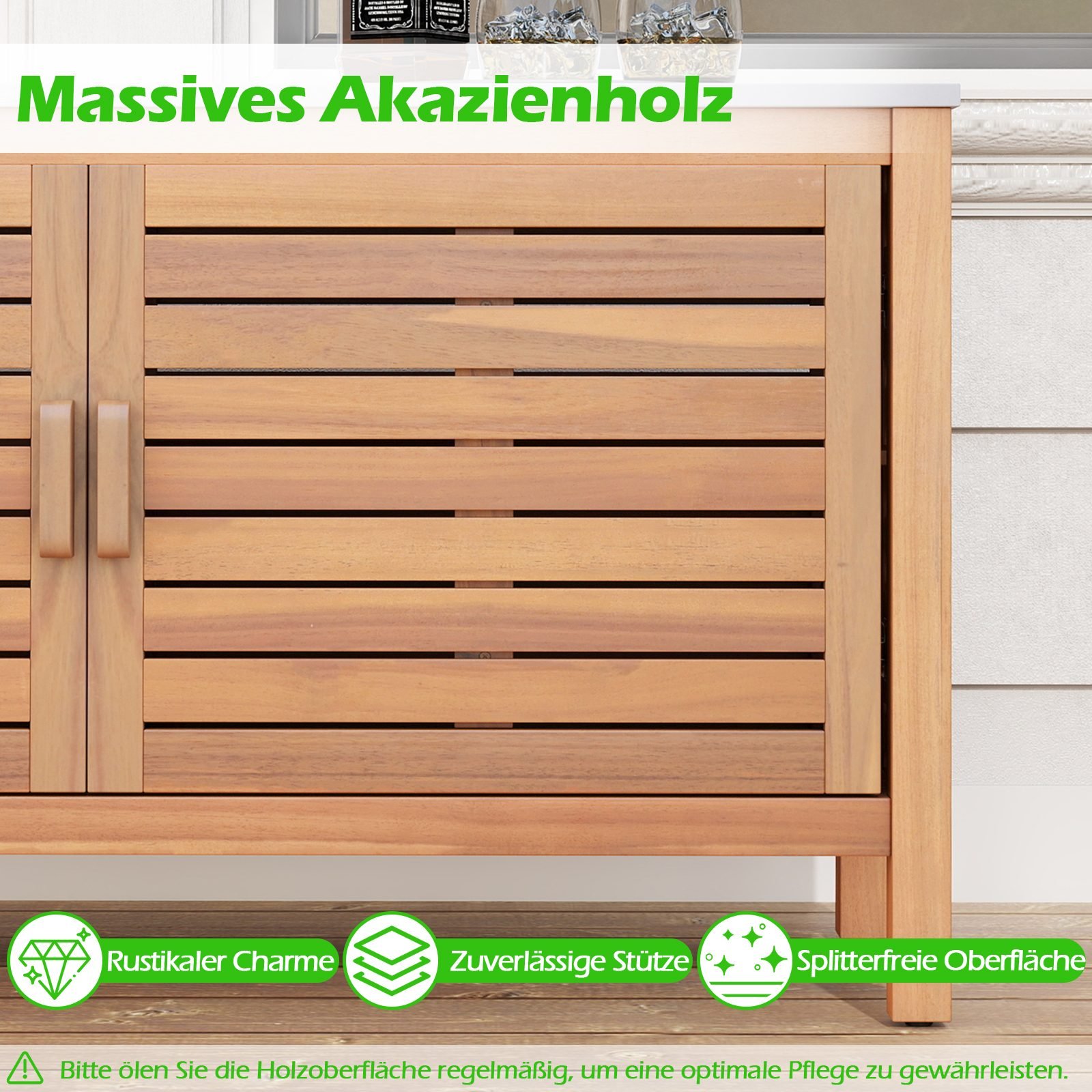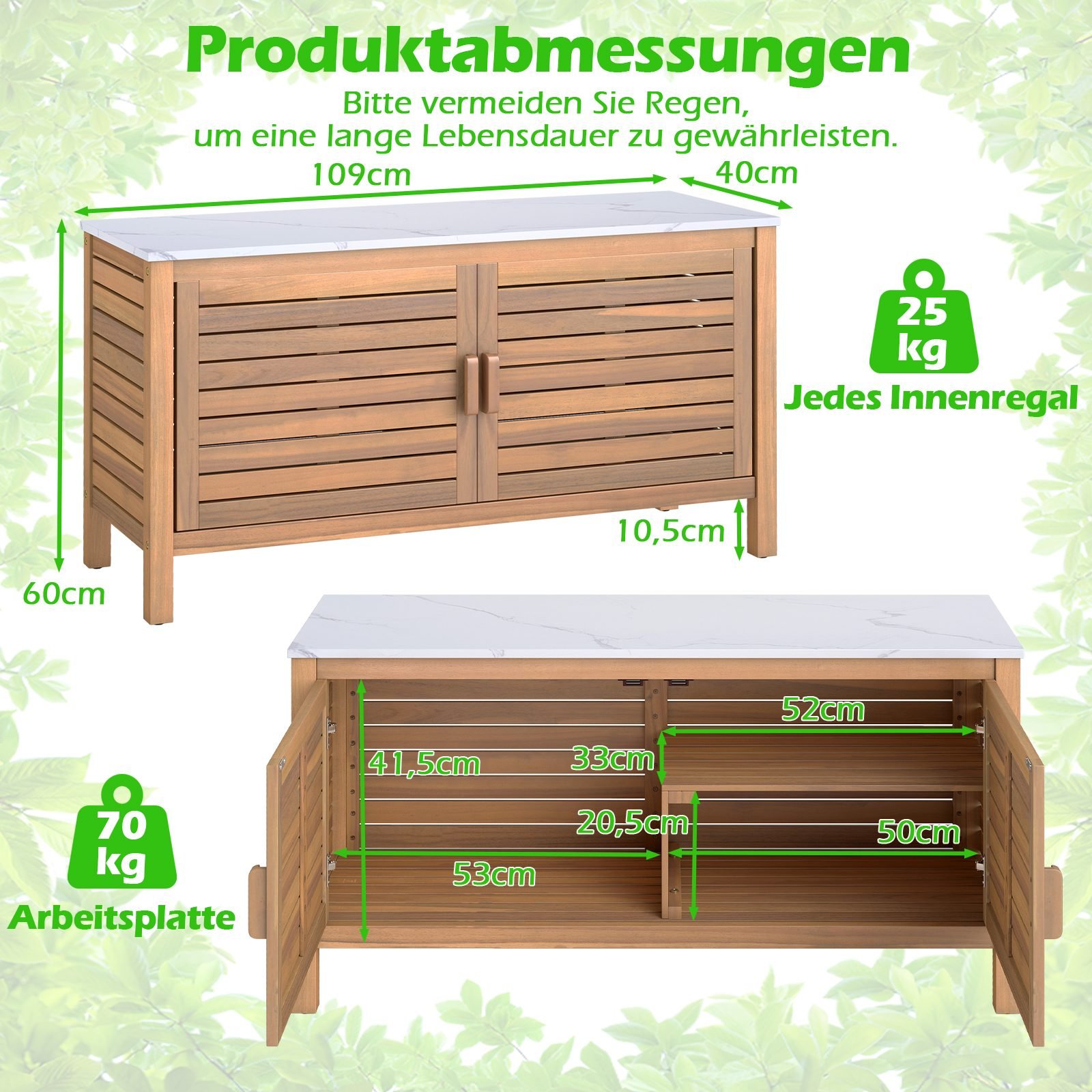 Stilingai ir funkcionaliai atnaujinkite savo lauko erdvę su mūsų medine lauko spintelę. Pagaminta iš tvirto akacijos medžio ir su elegantiška dirbtinio marmuro stalviršio plokšte, ši spintelė ne tik puošia aplinką, bet ir užtikrina ilgaamžiškumą.