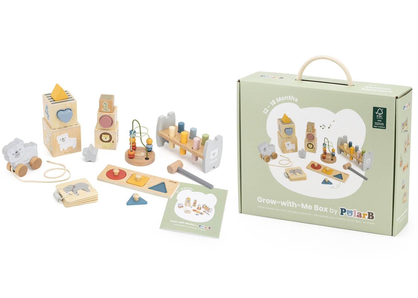 „Motion Masters“ (12–18 mėn.) – tai lavinamųjų žaislų rinkinys, sukurtas skatinti natūralų mažylių judėjimo ir pažinimo vystymąsi. Įvairūs žaislai padeda vaikams lavinti koordinaciją, rankų ir pirštų miklumą, mokytis atpažinti formas ir spalvas. Spalvingi elementai ir medinės figūrėlės žadina smalsumą ir skatina naujų įgūdžių įgijimą.