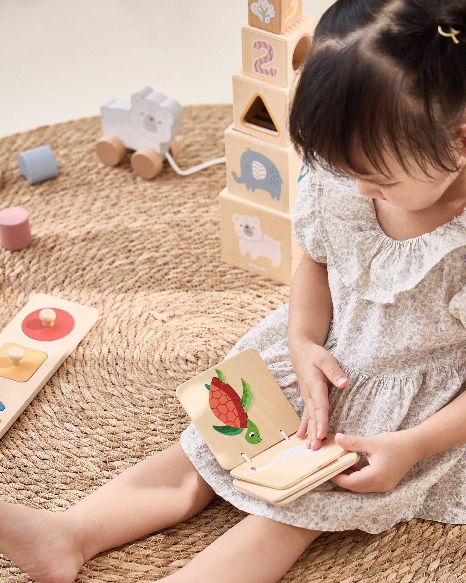 - Medinė knygelė – maža knygelė su gyvūnų paveikslėliais, tinkama pirmiesiems bandymams skaityti.