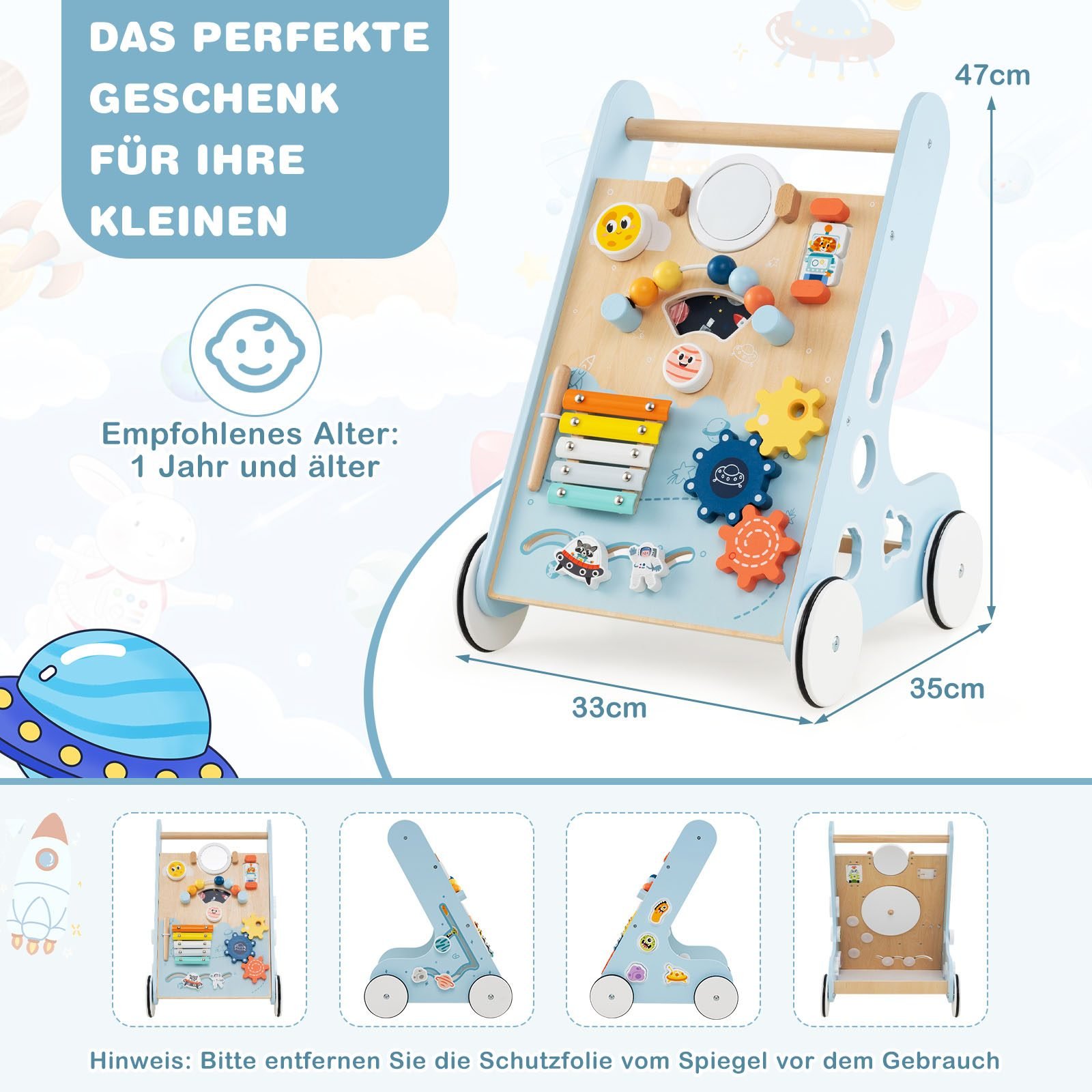 Medinis lavinimo vežimėlis su 8 veiklomis (Mėlyna)