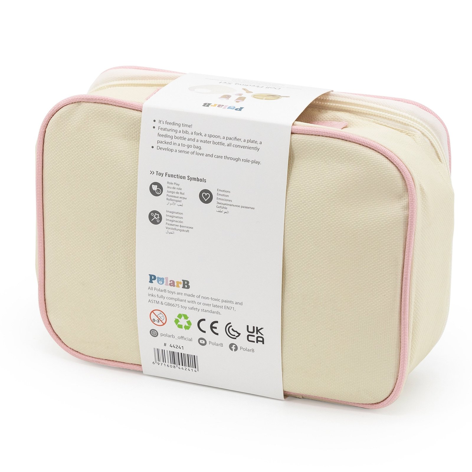 Rinkinį sudaro kruopščiai pagaminti ir patiems mažiausiems pritaikyti priedai. Visos dalys patogiai supakuotos į užsegamą krepšelį, todėl jį lengva laikyti ir transportuoti. Krepšelyje rasite viską, ko reikia rūpinantis lėlyte – nuo seilinuko iki buteliuko.
