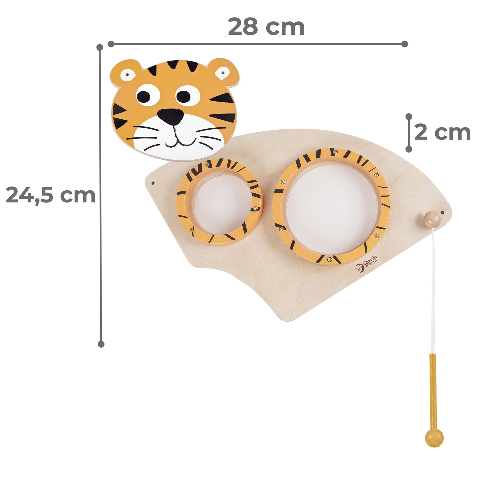„CLASSIC WORLD“ muzikinis sieninis skydelis „Tigriukas“ puikiai papildys kiekvieną ugdymo erdvę. Jis paskatins vaikus eksperimentuoti su muzika ir lavins jų klausos įgūdžius. Muzika yra efektyvi priemonė, skatinanti visapusišką vaiko vystymąsi.
