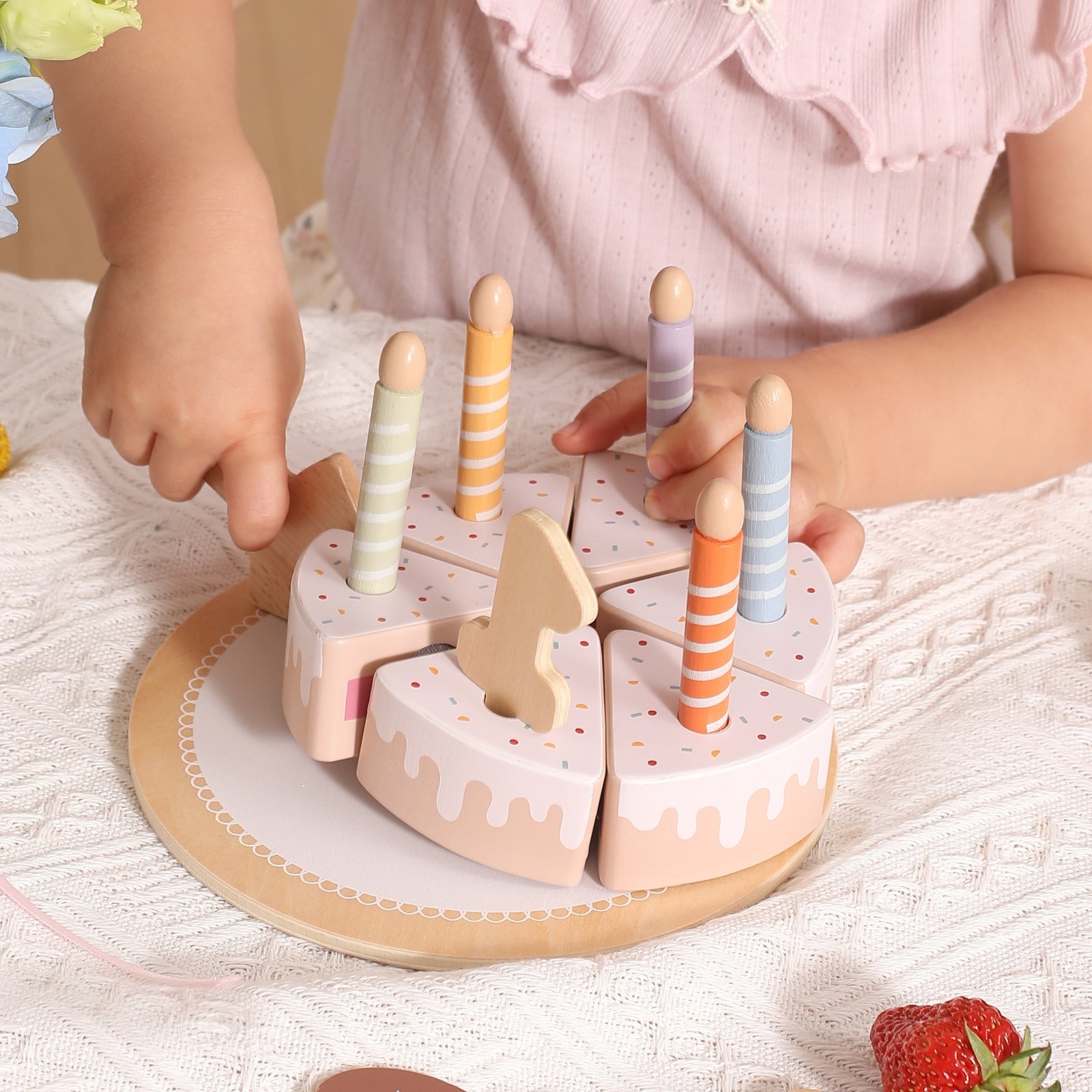 Šis Viga medinis gimtadienio tortas – puikus rinkinys, leidžiantis surengti nepamirštamą šventę! Jį sudaro tikroviškai atrodantys torto gabalėliai, žvakutės ir dekoracijos, kurias galima laisvai derinti ir išdėstyti. Specialūs lipdukai leidžia lengvai „pjaustyti“ ir vėl sujungti torto gabalėlius, taip skatinant bendradarbiavimą ir dalijimąsi žaidžiant kartu. Idealiai tinka žaidimams virtuvėje, gimtadienio šventėms ar susitikimams su šeima ir draugais.