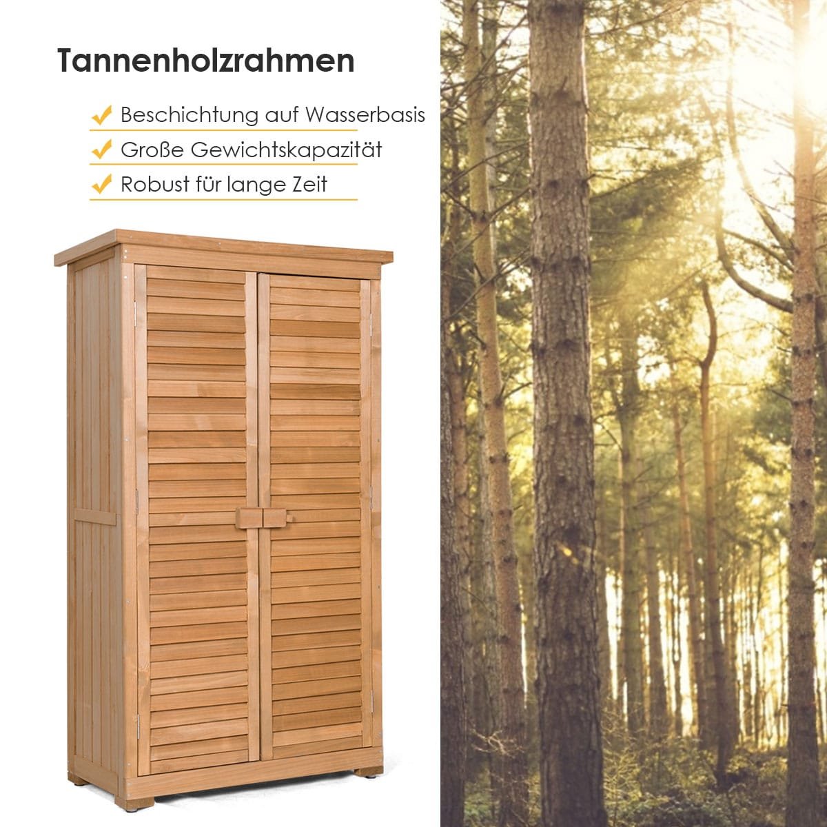 Ar vis dar blaškote savo sodo įrankius? Šis medinis sandėliukas, pasižymintis kompaktišku dizainu, yra optimalus sprendimas. Pagamintas su tvirtu pušies medienos rėmu ir padengtas atspariu vandeniui akriliniu laku, šis namelis patikimai apsaugos jūsų įrangą bet kokiomis oro sąlygomis. Be to, jis turi reguliuojamo aukščio kojeles, kurios išlygina grindų nelygumus ir užtikrina stabilumą.