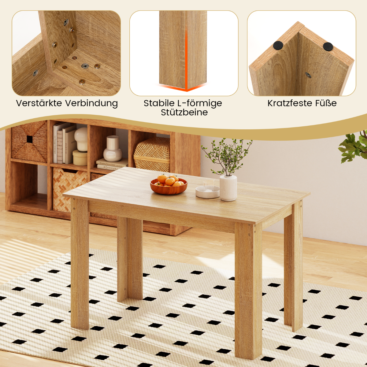 Medinis stačiakampis valgomojo stalas 4–6 asmenims (Natūrali)